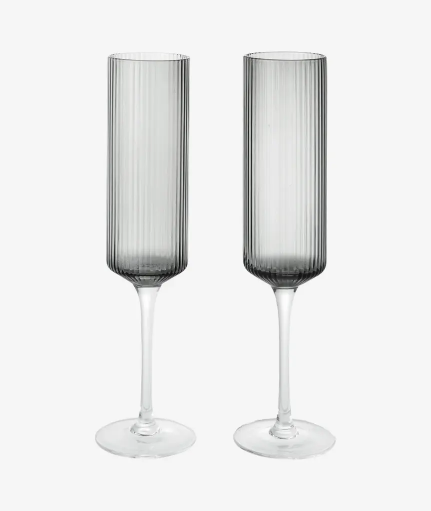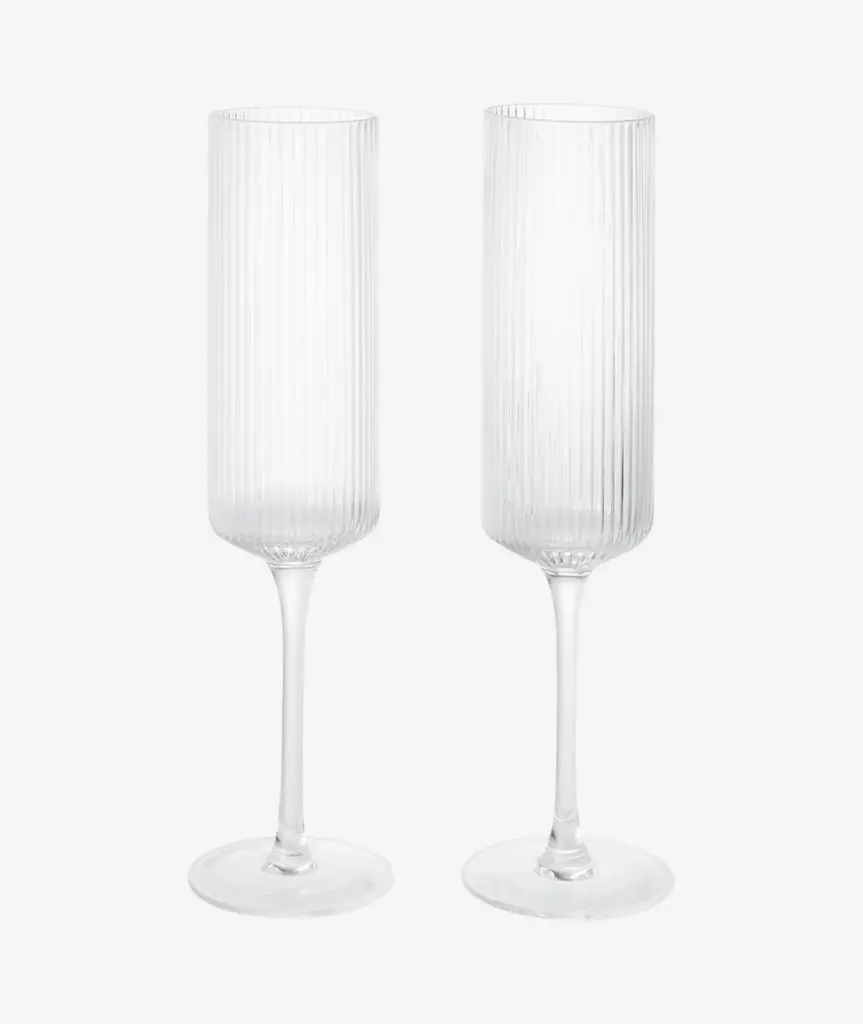 The Ripple Champagne Flutes bring a refined, elongated silhouette to the beloved Ripple series, perfectly suited for sparkling wines. Mouth-blown into the mould, each glass features the signature rippled surface that adds texture and a sense of movement. Their tall, slender shape enhances bubbles and aroma, making any toast feel celebratory.