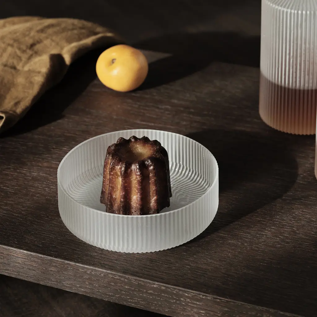 From fresh fruit to heavenly desserts or savory delicacies, the Ferm Living Ripple Serving Bowls can make anything look more appetizing. Designed with a modern take on the classic fluted pattern, these bowls boast a white frosted finish. The mouth-blown glass technique makes each bowl one of a kind, but all bowls have the same perfectly laser-cut and polished rim. This set comes with four bowls, providing an elegant way to serve food, whether everyday in the kitchen or for special occasions at dinner parties. Finally, the Ferm Living Ripple Serving Bowls are safe to clean in the dishwasher.
