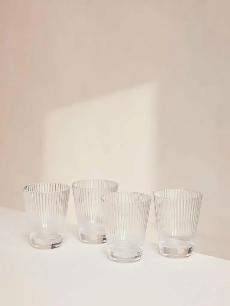 Whether it's cocktail hour or time for your daily water, ferm LIVING's Ripple Glasses add vintage charm to any drink. Expertly mouth-blown in a glass factory near Beijing, these glasses captivate with their unique rippled surface, which beautifully plays with sunlight. Beyond their timeless visual allure, they're practical too — dishwasher-safe, stackable, and easy to identify with their unique "stair-step" design. Round off your table setting by pairing with the matching carafe. Discover more about the artistry behind the Ripple collection.