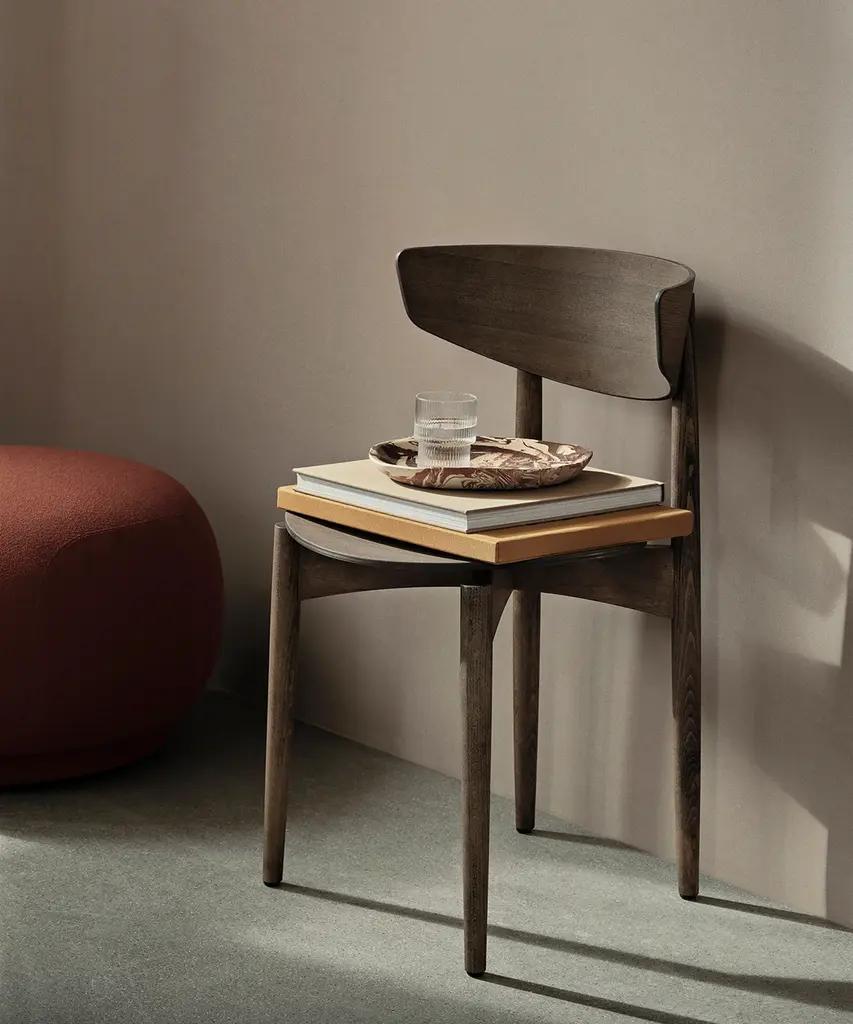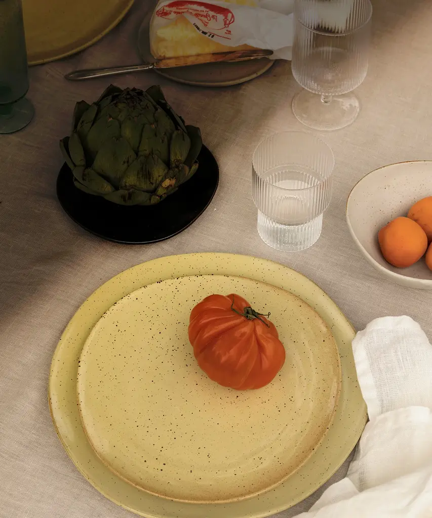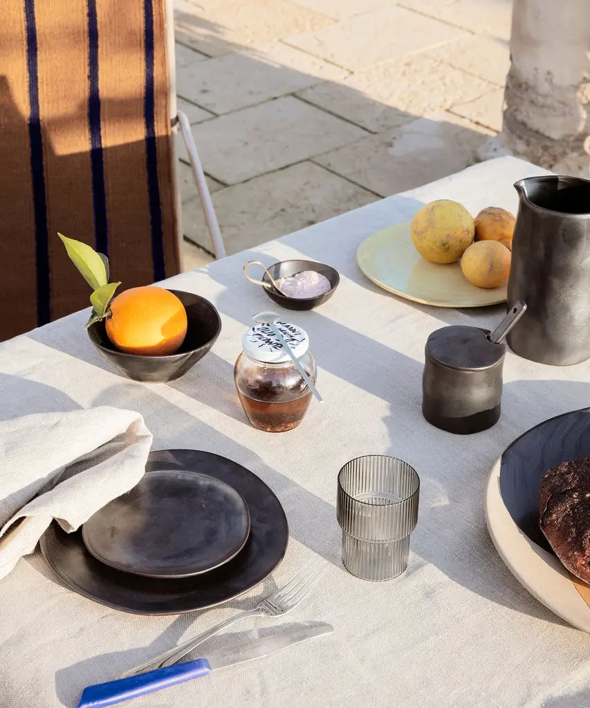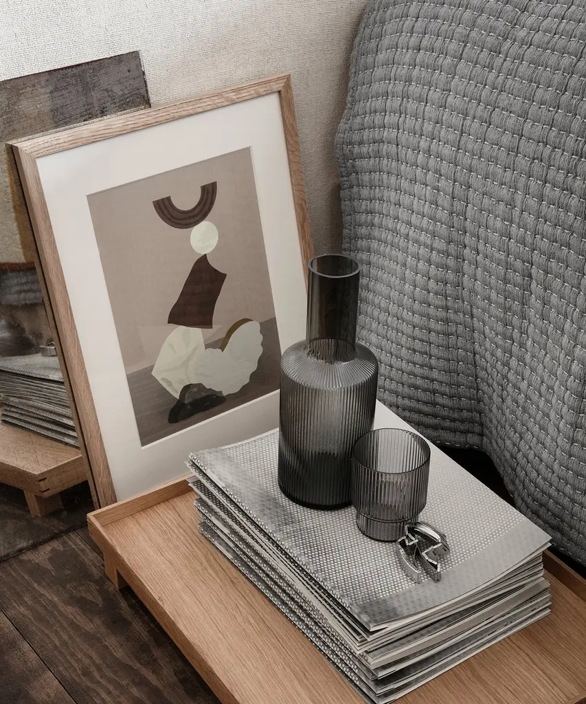 A vintage-inspired, textured glass that beautifully reflects light. These glasses are a rare combination of delicate in visual design, artisanal in craftsmanship, and durable in function. Each glass in this set of four varies slightly in shape, creating an innovative collection of stackables. Designed and produced by the Copenhagen-based studio Ferm Living.