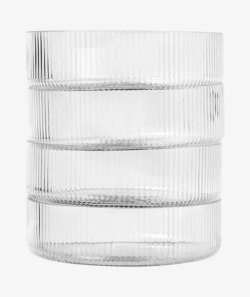 Made from delicate glass which has been mouth-blown into a rippled mold, the Ripple Serving Bowls are a set of four bowls that feature the same characteristic surface distinctive to the Ripple series. Use the set to serve appetizing olives, tapenades or other savory snacks to your guests, or to present your loved ones with a delicious dessert.