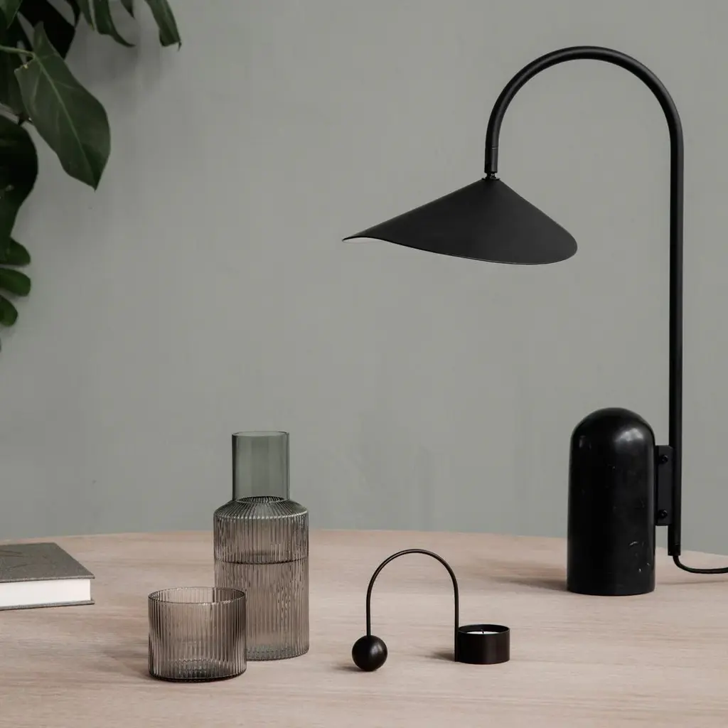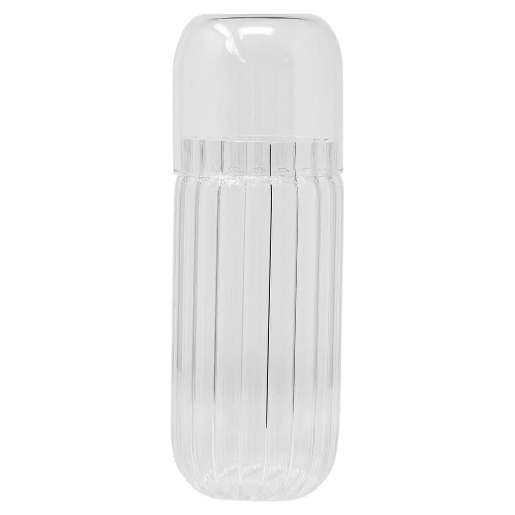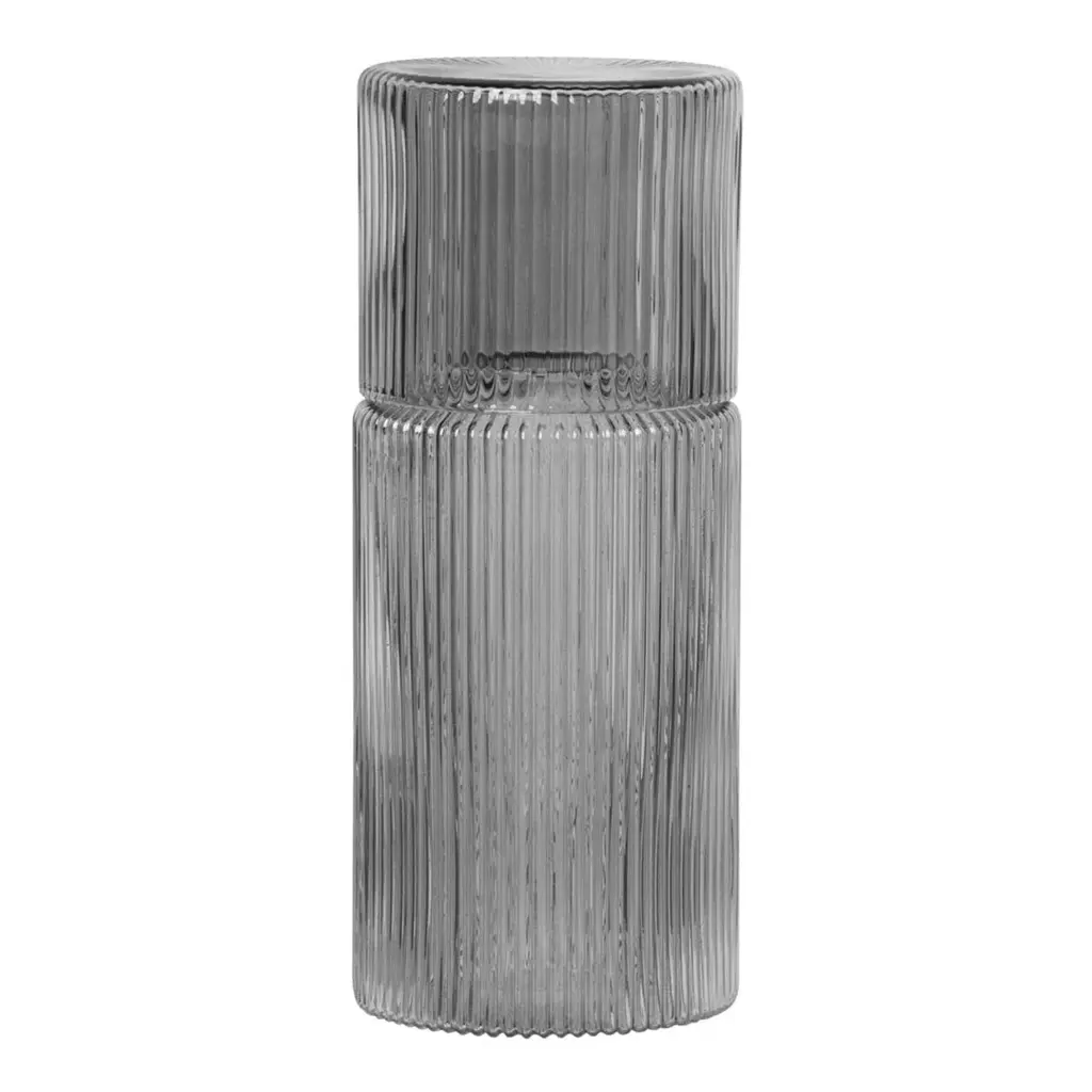 Stay hydrated all day long with this handy little set of carafe and glass, which doubles as a lid for the carafe. The set features the characteristics of the series with the rippled mouth-blown glass. It can be your healthy office accessory or a new favorite on the bedside table.
