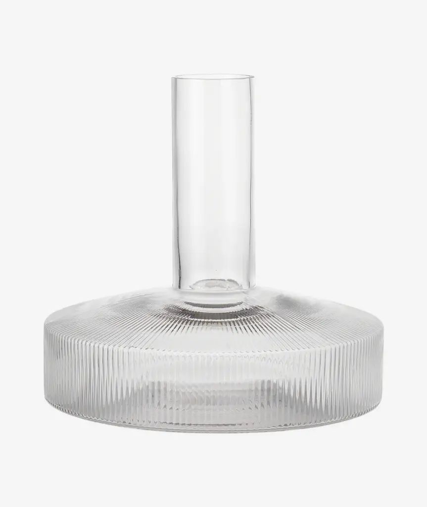 Mouth-blown into the mold, this practical and beautiful wine carafe boasts a contemporary rippled design. Meticulously crafted to elevate the natural aeration process of your wine, the carafe provides ample surface area and is designed to decant one liter of wine, while still accommodating larger volumes if desired.
