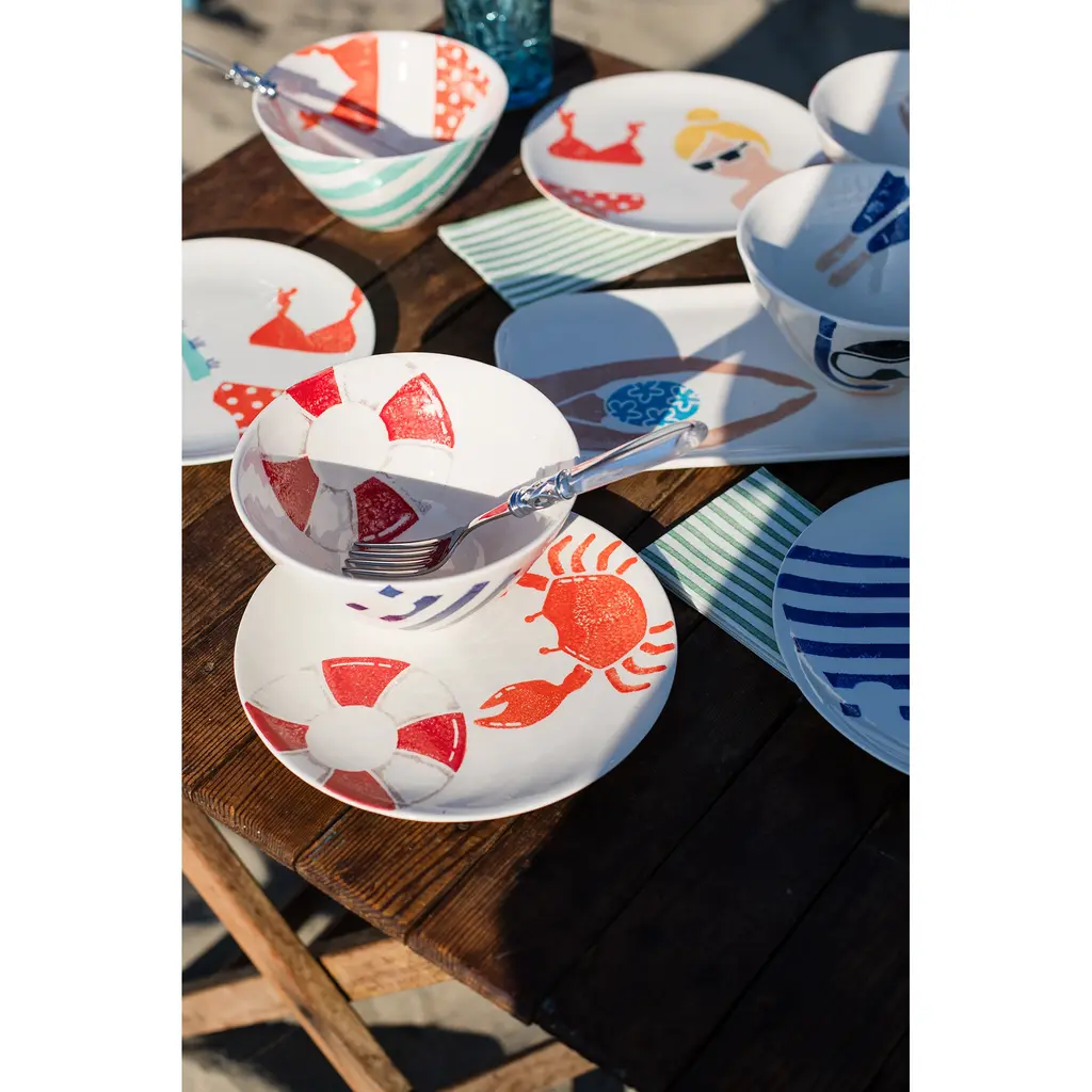 Celebrate la dolce vita with the whimsical, handpainted designs of VIETRI's Riviera collection. Snorkels, swimsuits and sea life bring the joy and warmth of an Italian beach to the table, making all of your gatherings feel like a well-deserved vacation.