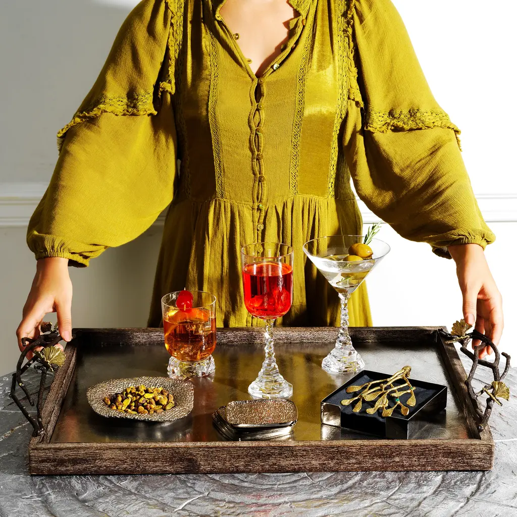 Michael Aram's exquisite Rock Collection was inspired by jagged edged stone formations as seen through the combined lenses of Rock and Roll Glam, Cubism and Art Deco. Referencing past cultural and artistic movements as well as natural forms creates a captivating display that brings artful elegance to the table.