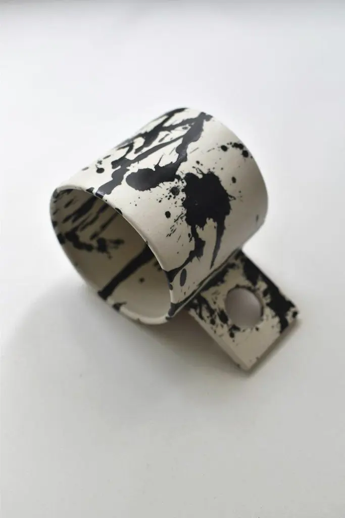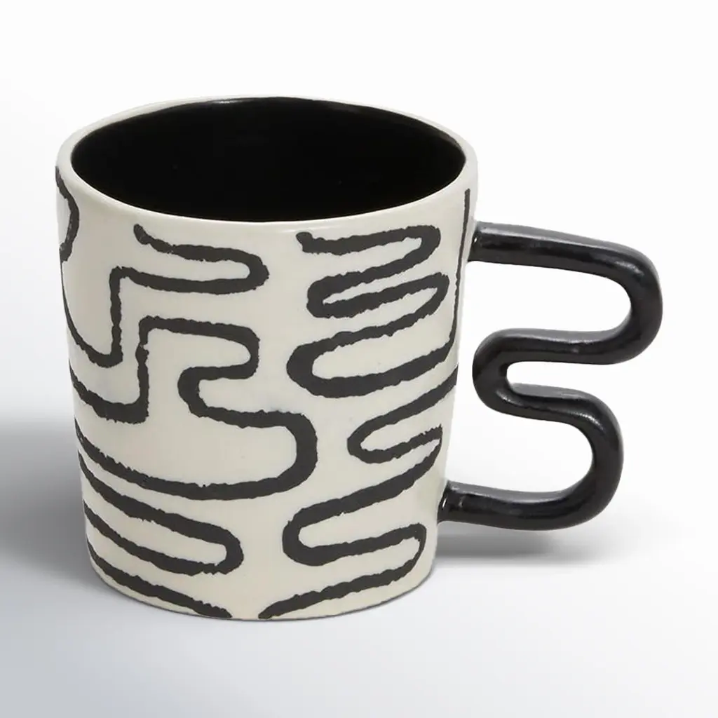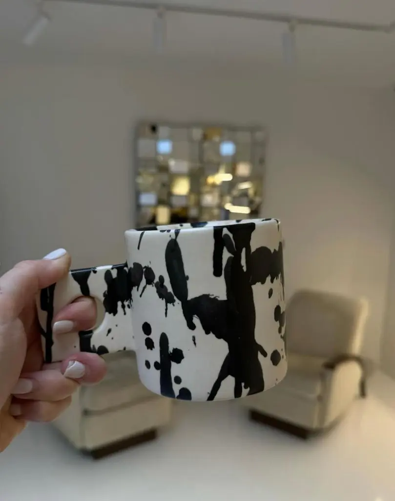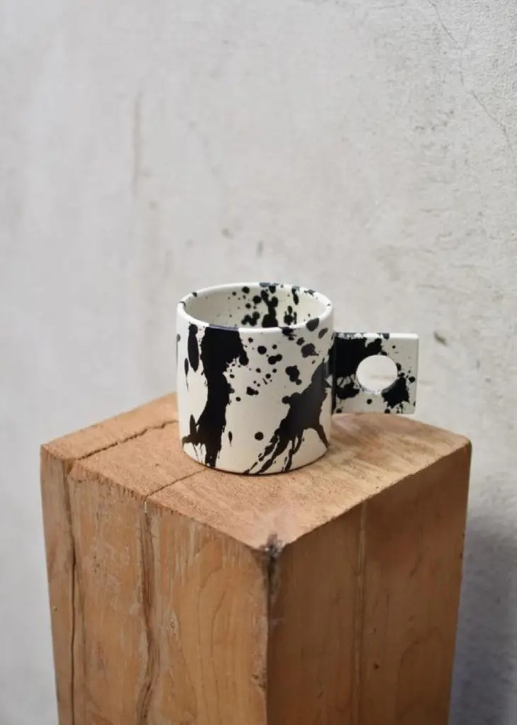 Beautifully handmade ceramic mugs designed to enhance the lovely experience of drinking well-made coffee.Beautiful to look at and highly functional, each handmade pottery mug is individually thrown and trimmed on the wheel.Sold as a set of two, the ceramic mugs are also glazed by hand in a matte glaze and each splatter is hand-painted so that no two pieces are alike.Try combining them with our cheese board and bowls from the rock collection to create your own unique handmade ceramic splatterware set. ✺ Dimensions10 cm. across, 15 cm. across with handle, 10 cm tall. Holds about 500ml. / 3.94" across, 5.90" across with handle, 3.94" tall. Holds about 16.9oz. ✺ Custom colorTailor the mugs to your liking! Simply let us know the color you have in mind, and we'll craft them accordingly.✺ Handmade and one-of-a-kindSince every handmade coffee mug is crafted individually, minor variations in size and shape are to be expected. Handmade in Buenos Aires, Argentina