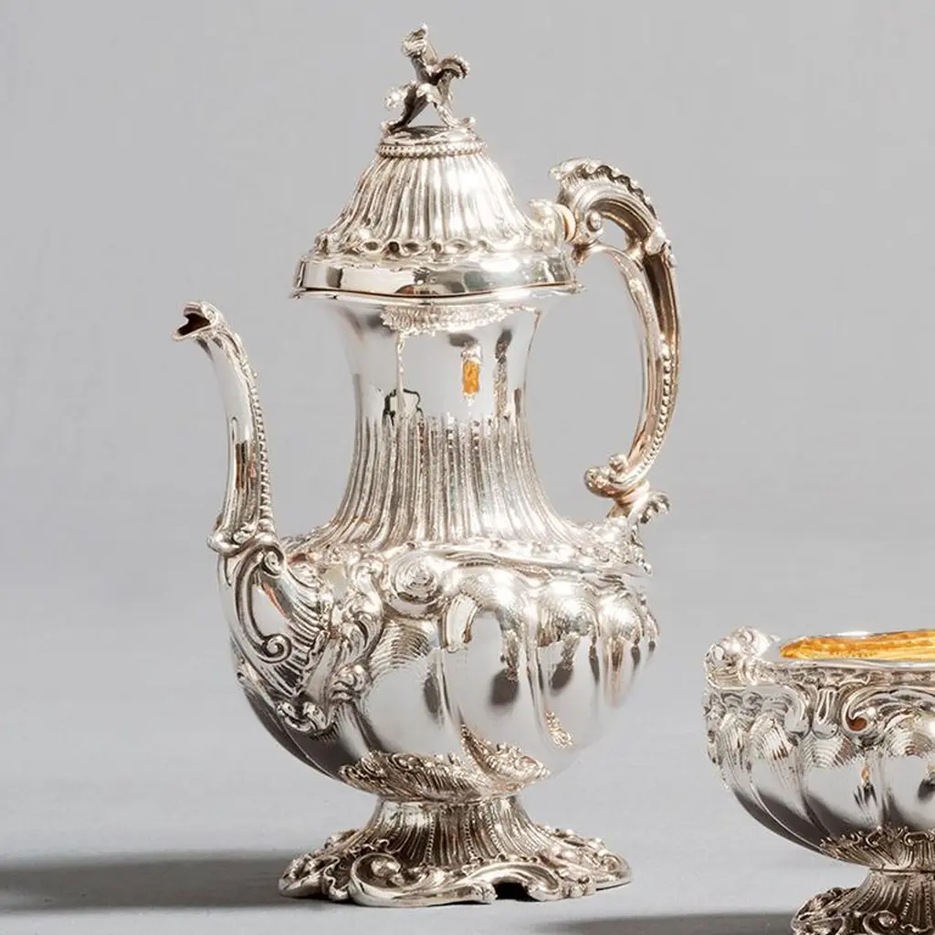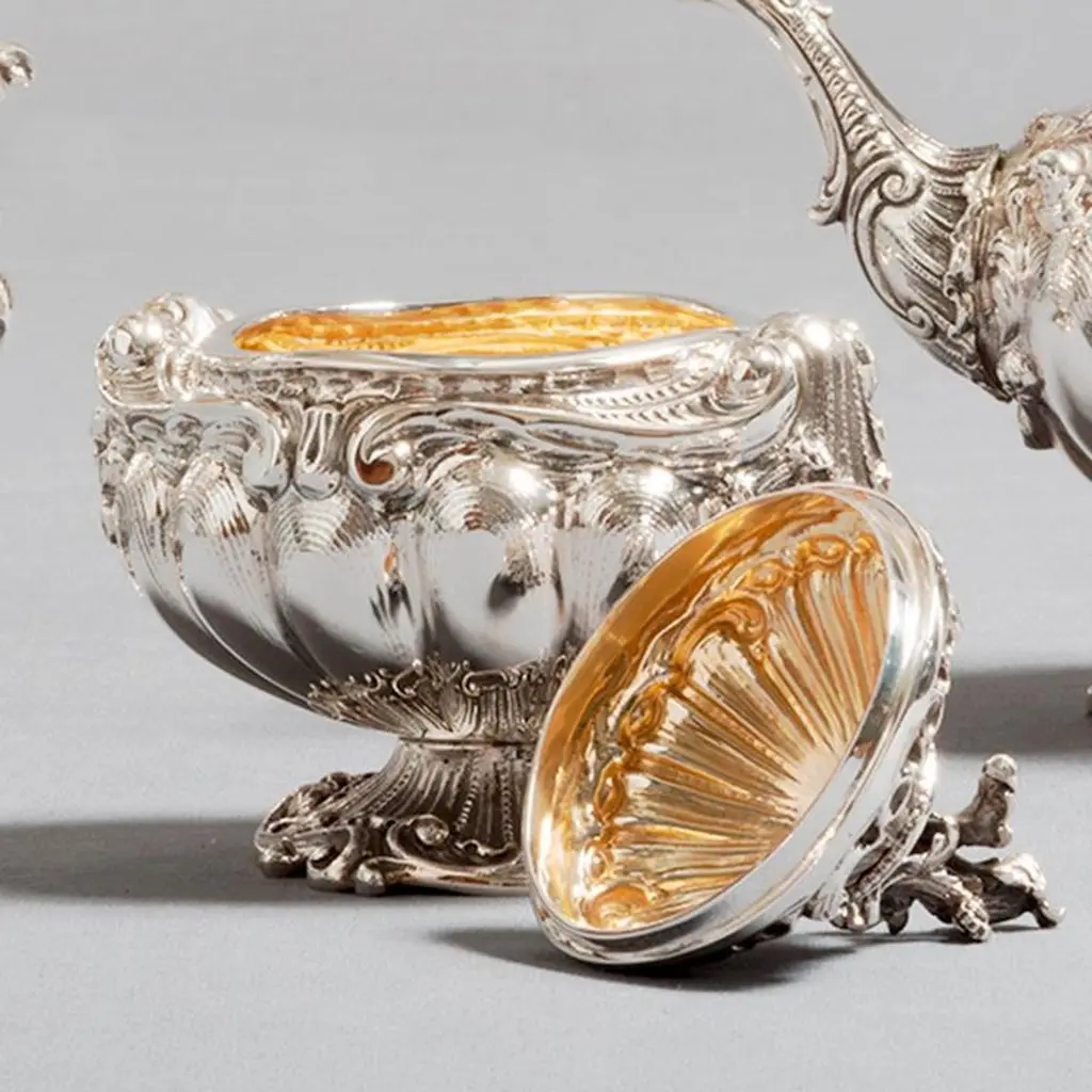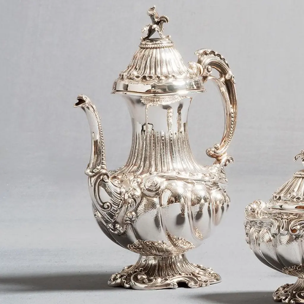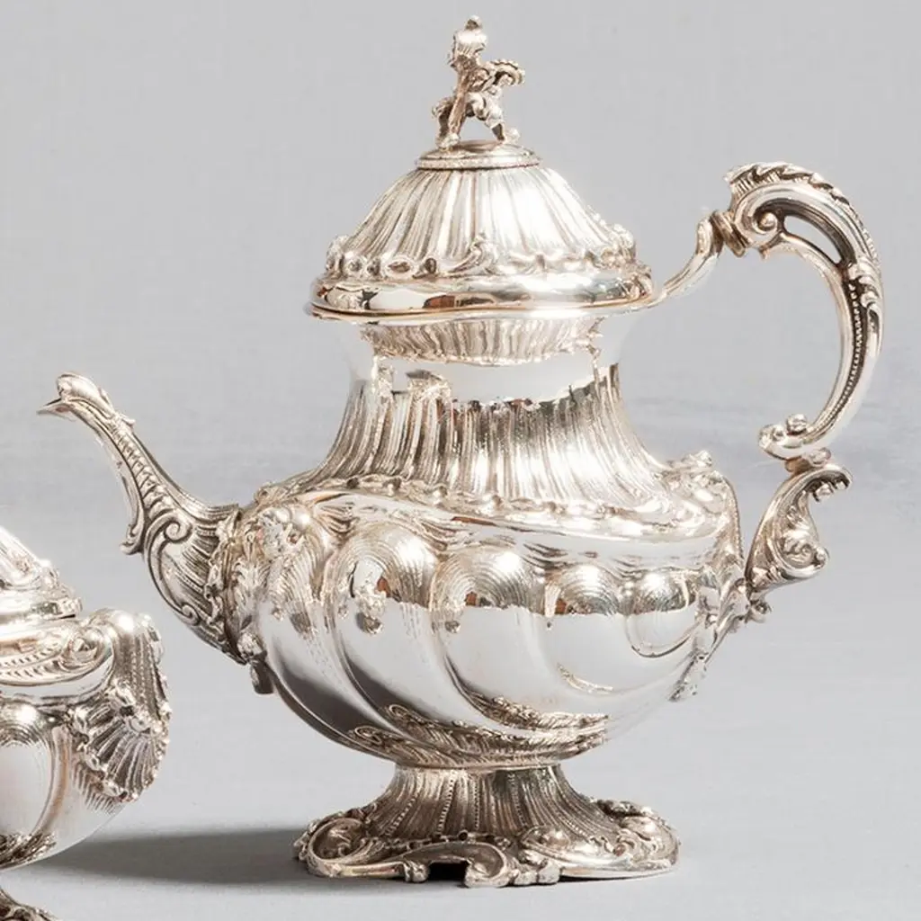Rococo style tea set - sterling silver 3 pieces set - ag/925/g 4250Matching tray availableHandmade in ItalyCompletely crafted in our workshop in MilanoGanci Argenterie - Hallmark 110MI - one of the oldest Italian Silversmith.