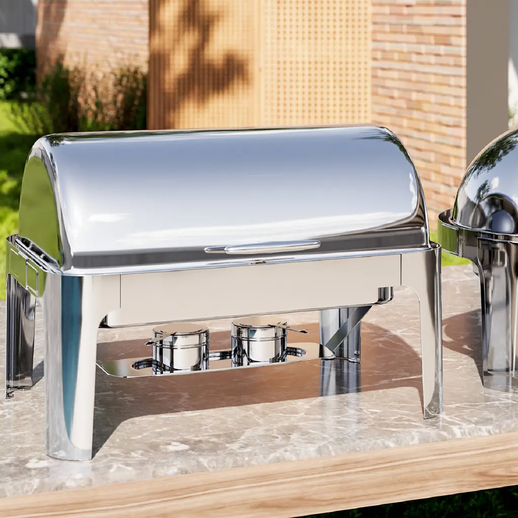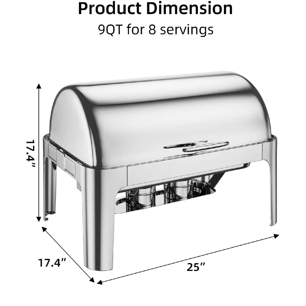 Roll Top 9Qt Chafing Dish Buffet Set, Catering Food Warmer - 1 X 1/1 + 2 X 1/2 Pan
