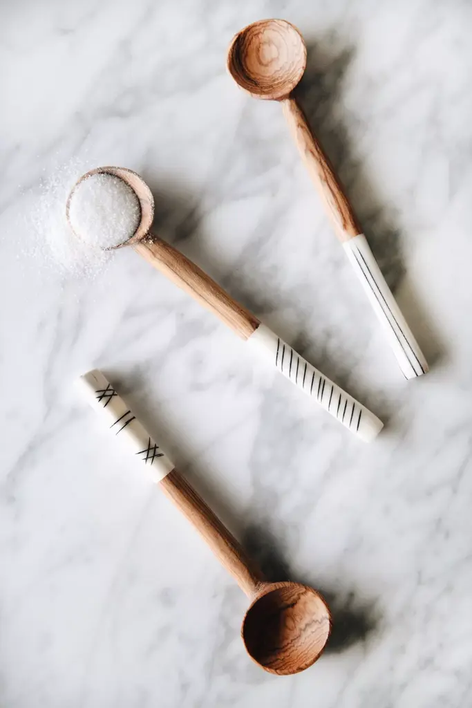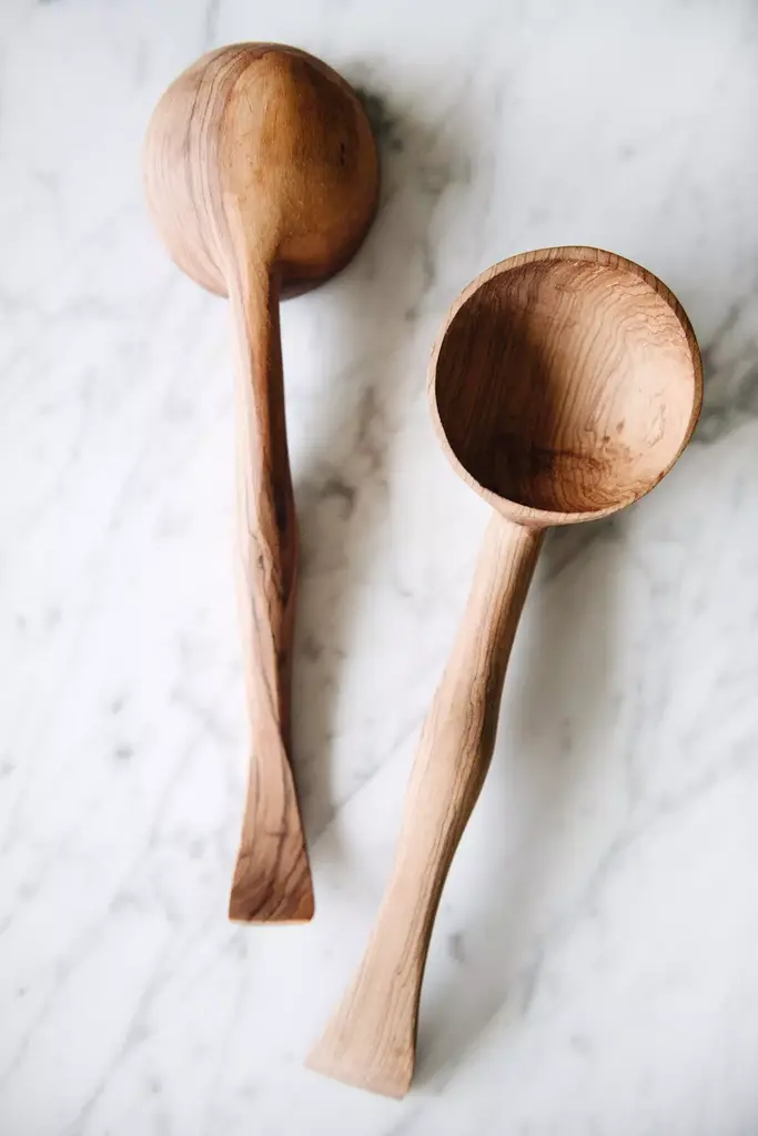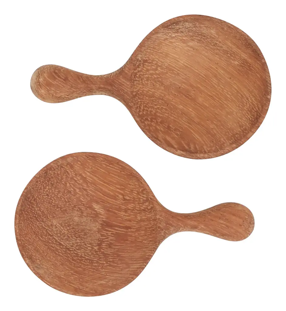 Add a layer of earthy texture to your serveware collection with our Romi Spoons. These endlessly useful utensils are carved from mango wood into simple, unique shapes. Just as lovely in the dining room as they are helpful in the kitchen, we love them for scooping spices, salts and seeds during prep, as tasting spoons while cooking or for dishing up condiments and sauces on the dining table. •small: approximately 2.25" W x 3.75" long•large: approximately 1.5"W x 9" long •mango wood •food safe •hand wash only •each is unique; slight variations in shape, size and wood tone should be expected