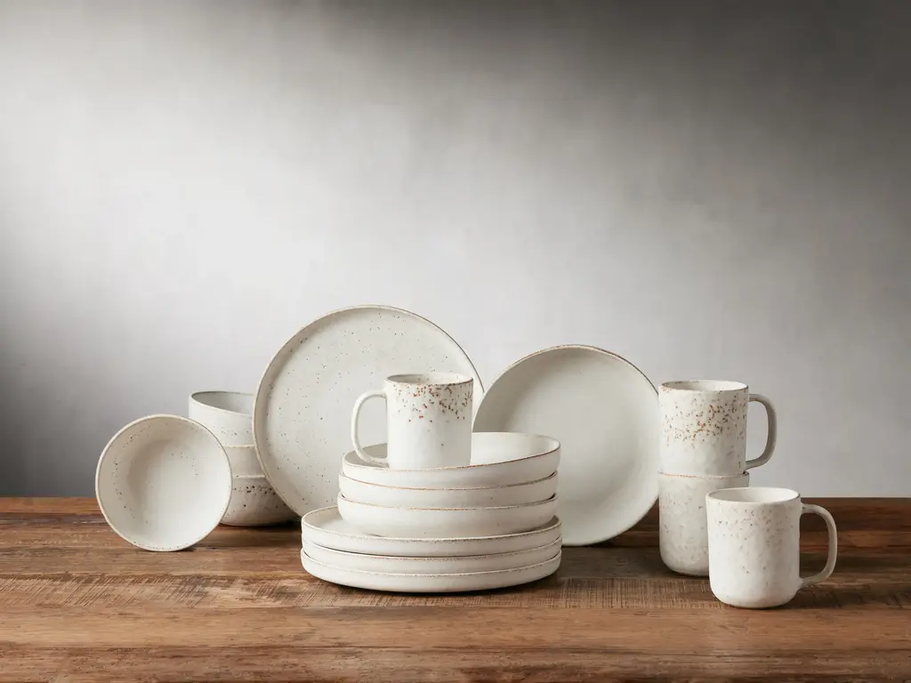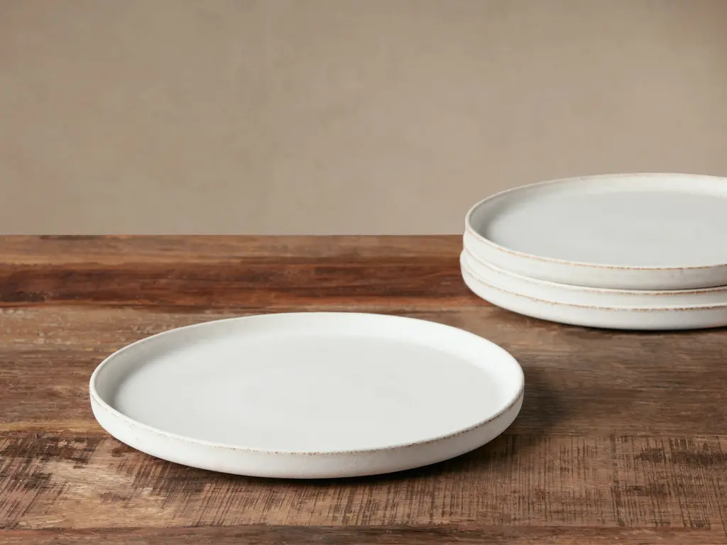 Our handcrafted Ronan Dinnerware Collection features a reactive glaze over stoneware, resulting in a warm ivory color with uniquely varying patterns and markings to create a modern yet rustic tablescape aesthetic. Stoneware tableware made by our Portuguese artisan partners. Features a reactive glaze finish. Microwave safe. Set of four dinner plates. Due to the nature of this collection and its reactive glaze finishes, each piece may vary slightly in color and pattern; adding unique character without affecting performance.