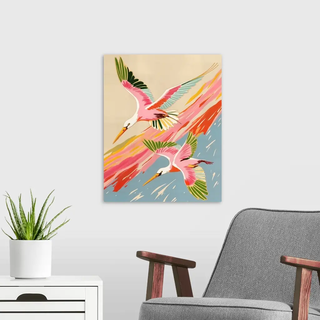 Roseate Spoonbills Sky Ballet wall art for home and office decor. Discover canvas art prints, photos, mural, big canvas art and framed wall art in GreatBigCanvas.com's varied collections.