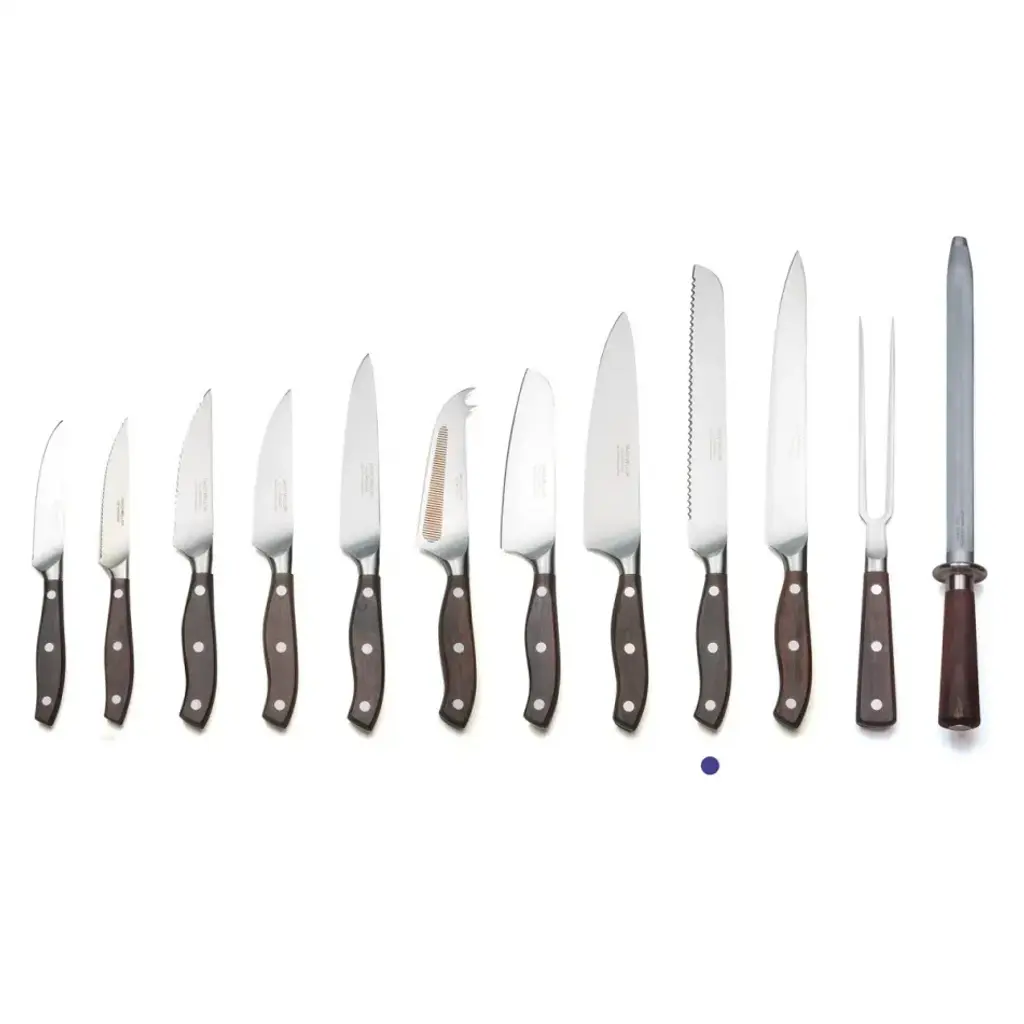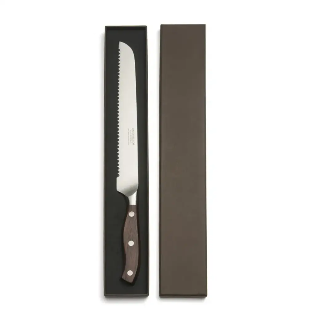 Our top of the range knives, designed by Corin Mellor and newly introduced after 3 years’ development. The sinuously curving handles are made in Indian rosewood, the traditional material favoured by culinary experts. These are carefully hand finished and wonderful to use. Knife blades exploit the latest techniques in steel casting to arrive at the beautifully curved bolster. Blades are precision ground and glazed to give a specially bright finish. Drawing on the David Mellor expertise in metalwork these are amongst the world’s finest knives.