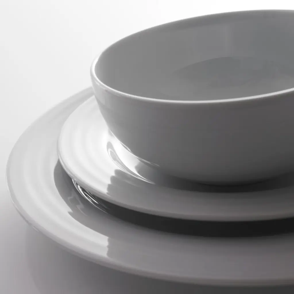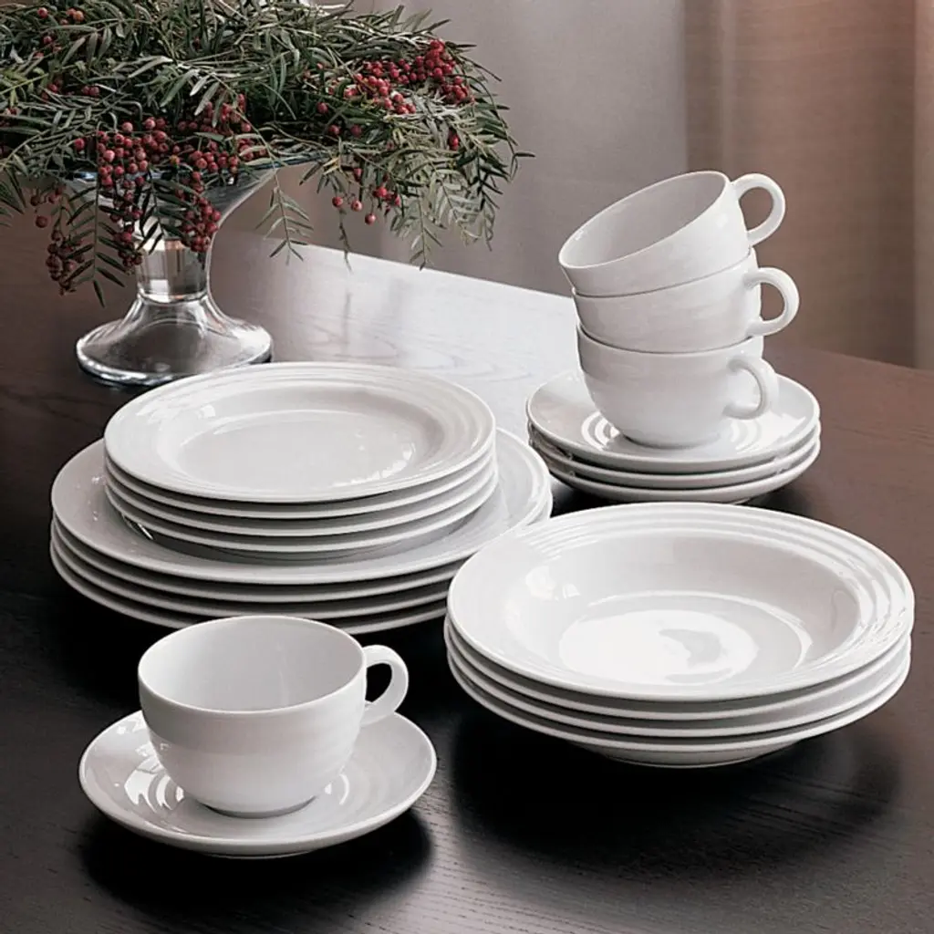 Designed by Martin Hunt of Queensberry Hunt, Roulette dinnerware has been a top-selling Crate and Barrel favorite since the pattern was introduced in 1992. Crafted of durable, pure white porcelain, Roulette features subtle concentric circles that create an eye-catching rippled effect. Mix and match with our Roulette Blue Band Dinnerware.