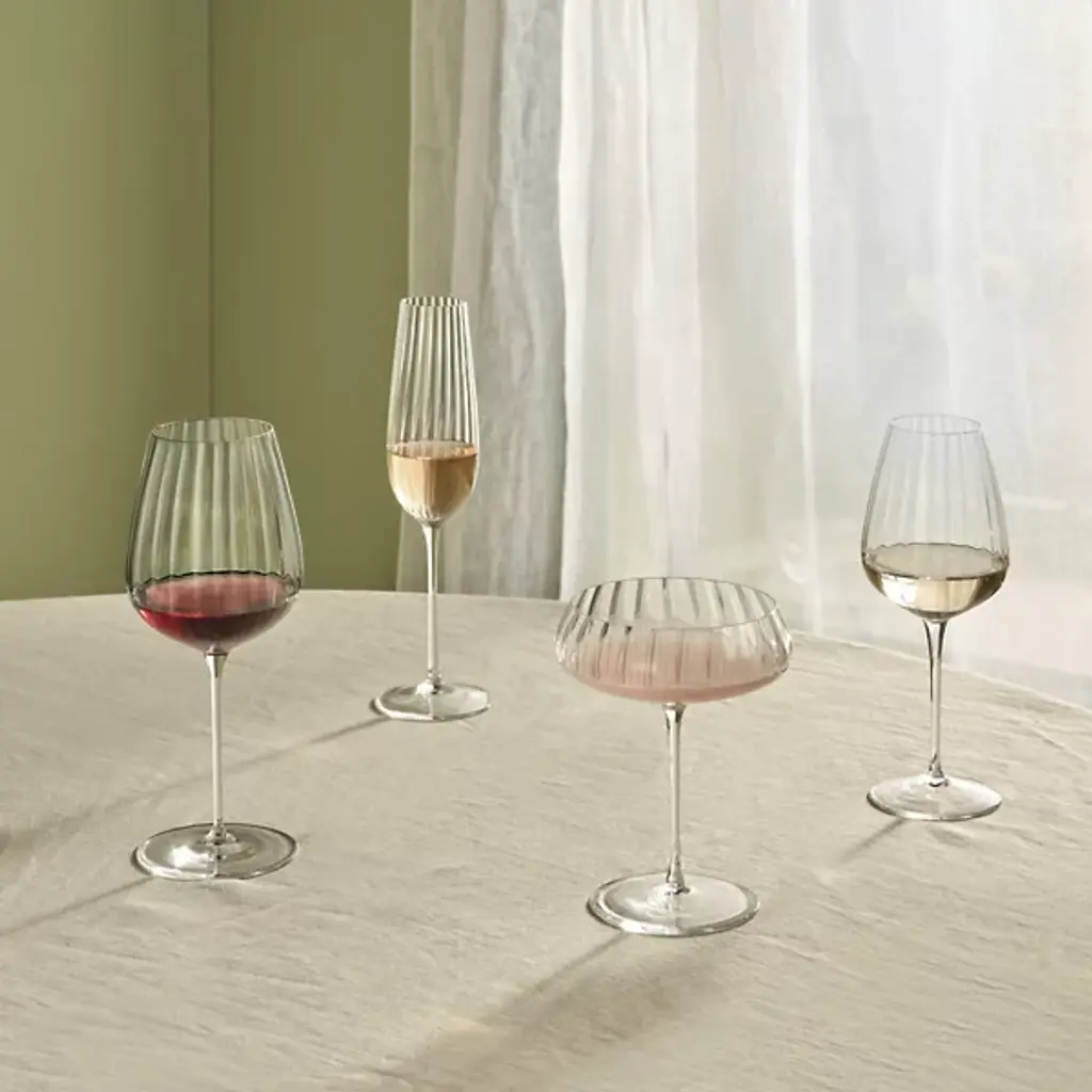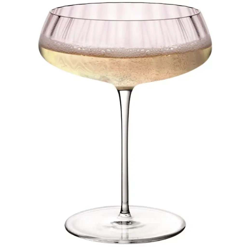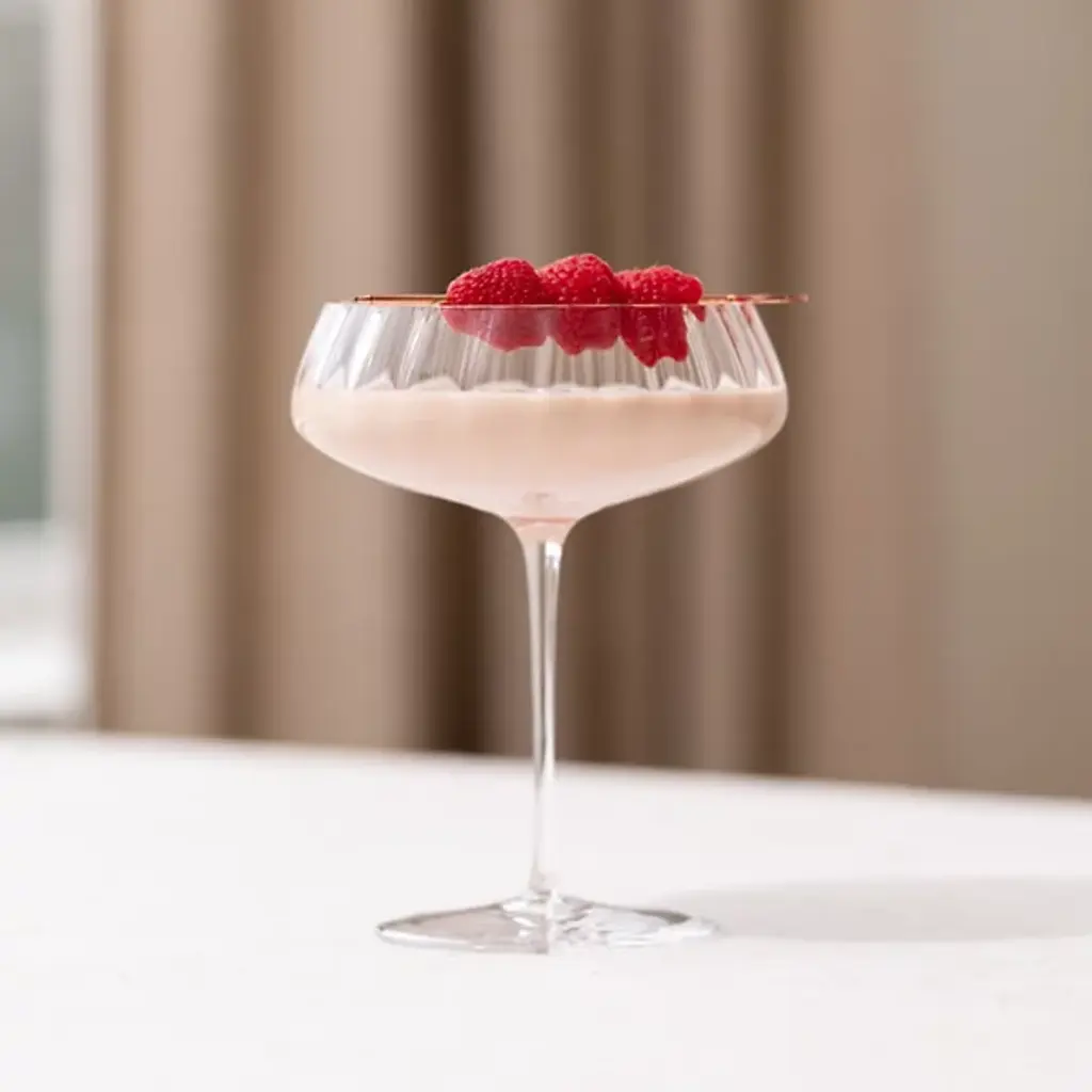 Elevate your wine experience with the Round Up Round Up Coupe Glasses, Set of 2 from Nude, crafted from premium lead-free crystal. Featuring vertical line detailing for a luxurious optical texture, these glasses enhance the light, color, and aroma of your wines. The rounded-bottom design ensures a smooth pour while preserving flavor. Pair with red, white, or sparkling wine glasses from the collection for ultimate refinement.