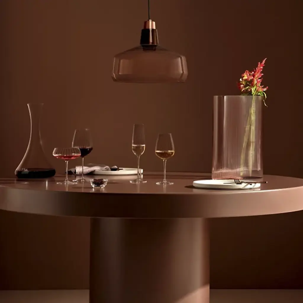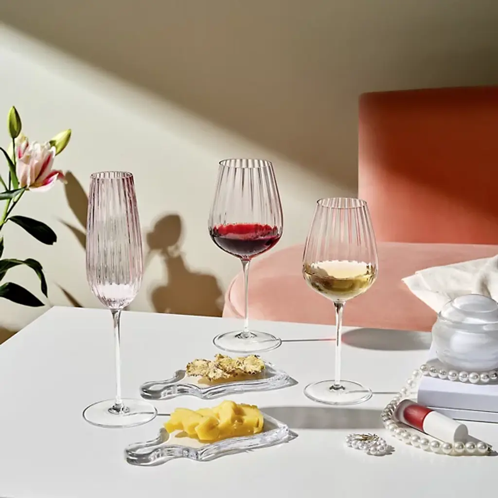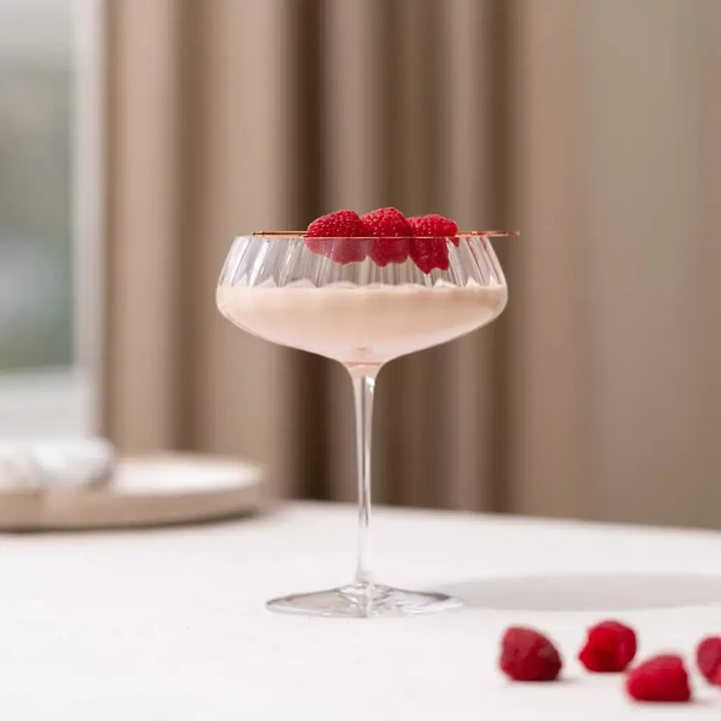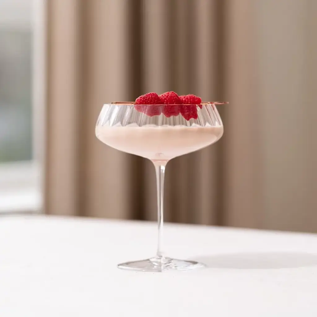 Elevate your wine experience with the Round Up Round Up Coupe Glasses, Set of 2 from Nude, crafted from premium lead-free crystal. Featuring vertical line detailing for a luxurious optical texture, these glasses enhance the light, color, and aroma of your wines. The rounded-bottom design ensures a smooth pour while preserving flavor. Pair with red, white, or sparkling wine glasses from the collection for ultimate refinement.