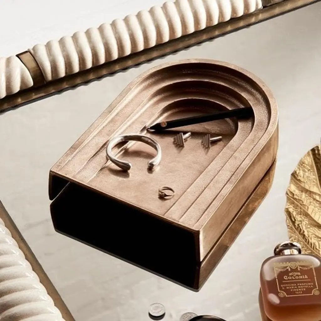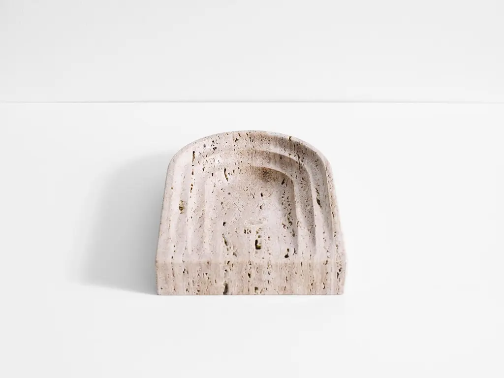 Travertine Thoronet Dish by Henry WilsonDimensions: W 20 x D 30 x H 5 cmMaterials: TravertineThis sculptural item is handmade in Sydney Australia.Thoronet dish, shares its' name and arched lines with the Abby in the south of France. Each piece is manufactured in natural stone, meaning variations of the pattern in the stone will occur from piece to piece. Has a honed finish, unsealed with porous sections left unfilled.The stone Thoronet Dish measures 325 x 255 x 55mm.Each item is manufactured in natural stone, meaning variations of the pattern in the stone will occur from piece to piece.Henry Wilson's work combines a rational, democratic utility with an element of sculptural expression. There is a clear form and function in our products, but it’s important they also have feeling. We are interested in the awkward beauty that comes from something made by hand. We like to explore how imperfection can be introduced into an industrial process, to make something at scale that retains a sense of individual charm.Permanent Collections and Exhibitions- Museum of Applied Arts and Sciences, Sydney, Australia- Art Gallery of Western Australia, Perth, Australia- 'Sempering' XXI Triennale, MUDEC, 2016, Milan, Italy.