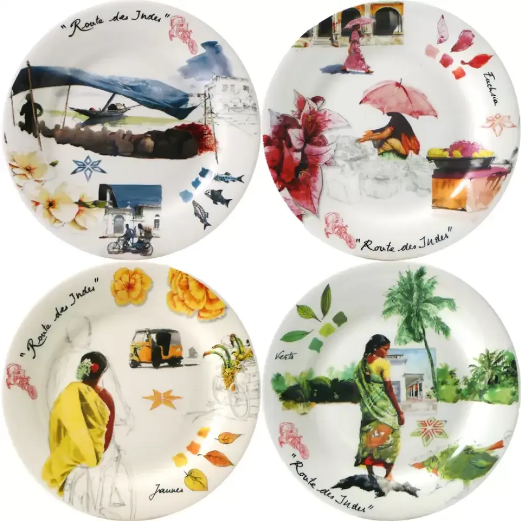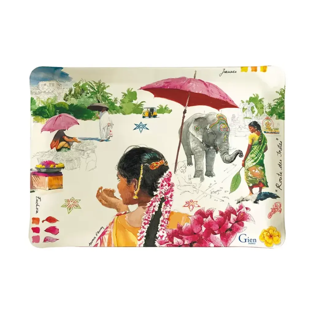 Inspired by the artist’s travel diary, this design transports us to the Indian subcontinent. We are carried away by the power of the colors, seduced by the sophistication of the details and mastery of the subjects. Located near the Loire Valley castles, the Faïencerie de Gien has been synonymous with prestigious faience tableware and decorative objects since its founding in 1821. Gien pieces are renowned for their warm white clays decorated with traditional motifs reminiscent of the French countryside.