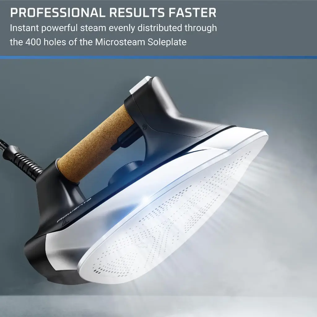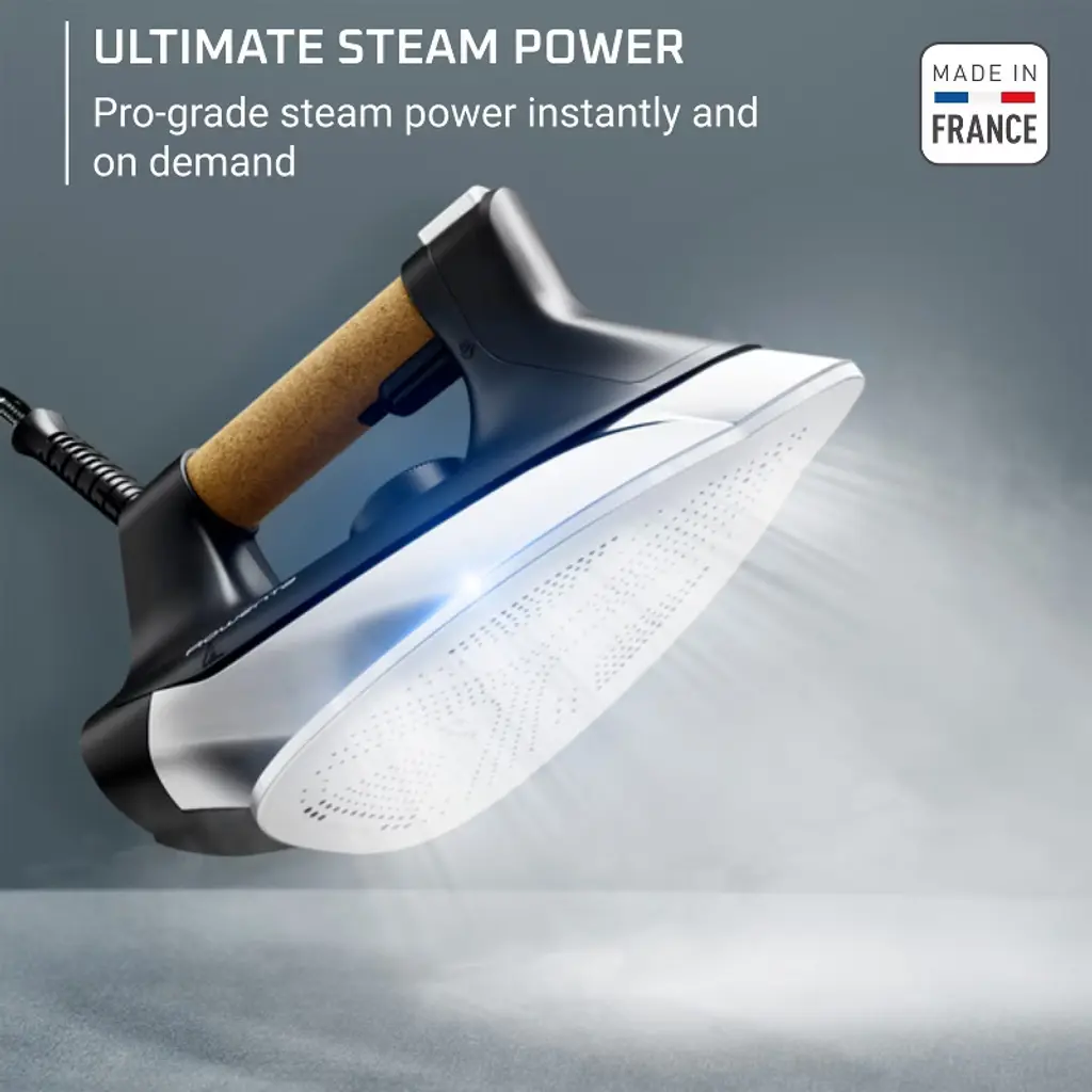 The Rowenta Ultimate Steam Pro Steam Generator Iron offers a pro-grade garment care experience with uncompromising steam power. The high-performance soleplate offers the best steam distribution on the market,* with a precision tip for easy access into hard-to-reach areas and a premium cork handle for smooth, hassle-free garment care every time. Discover exceptional steam power and enhanced features for an unmatched garment care experience.About Us: For over 140 years, Rowenta has been a leader in garment care, offering advanced steam technology. Our high-performance irons and steamers deliver professional results, making it effortless to keep clothes flawless every day. Designed for those who demand the best, Rowenta helps you face each day with confidence.