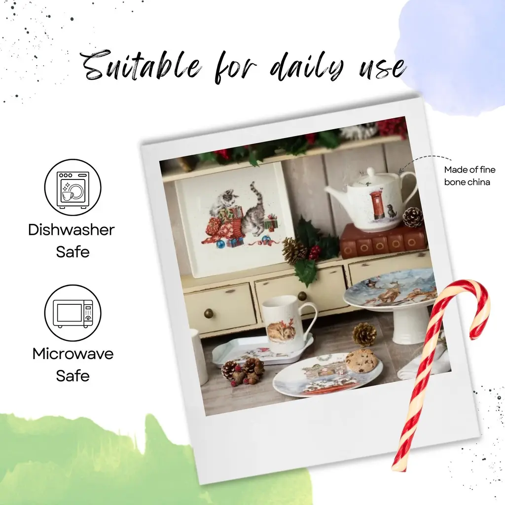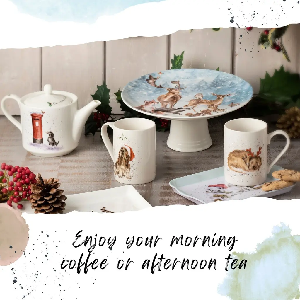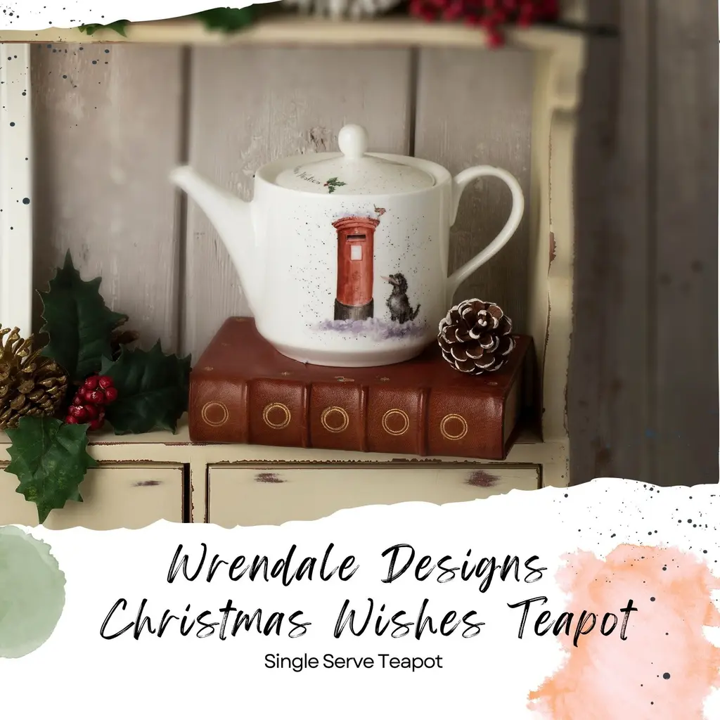 Royal Worcester Christmas Wishes 16oz Teapot - Dog with Holiday Card, Wrendale Designs - Fine Bone China Holiday-Themed Teapot - Dishwasher, Microwave, Freezer Safe - Decorative Holiday Teapot - NewCelebrate the holiday season with the Royal Worcester Christmas Wishes Teapot from Wrendale Designs. This charming teapot features a delightful illustration of a dog with a holiday card, capturing the festive spirit with whimsical flair. Inspired by the charming creatures of the Lincolnshire countryside, watercolor artist Hannah Dale has perfectly captured the irresistible personalities of these familiar animals in this enchanting design. The Christmas Wishes Teapot features signature flecks of color down the handle and over the top, adding a whimsical touch to its festive design. This decorative piece not only serves as a functional teapot but also as a beautiful holiday decoration that enhances the joy and warmth of the season. Whether displayed on a holiday table or used to serve beverages, it is sure to bring a smile to everyone's face. This teapot makes a thoughtful and delightful holiday gift for friends and family. Its charming design and high-quality construction make it a memorable present that will be cherished for years to come. Whether for a tea lover or someone who appreciates fine china, the Royal Worcester Christmas Wishes Teapot is sure to bring holiday cheer and warmth to any home.FEATURES:COLOR:MATERIAL:WHAT'S IN THE BOX:PACKAGING: Retail Packaging