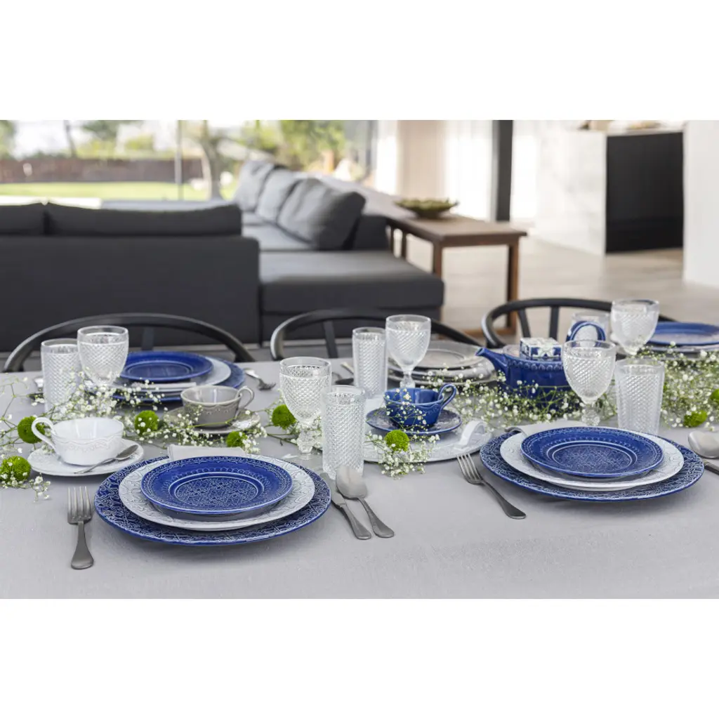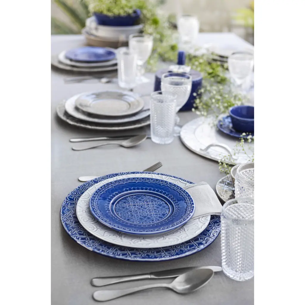 Inspired in the Renaissance blue tiles by Raphael Bordallo Pinheiro, Rua Nova combines tradition and modernity. With a variety of utilitarian pieces and table accessories in four colours, this collection makes a tribute to the blue tiles, which can be admired in so many Portuguese streets. Portugal's most beloved cartoonist of the 19th century, Bordallo Pinheiro was famous for creating the character "Ze Povinho," a rustic laborer who was kind to his friends and contemptuous of those with money and power. His artistic style blends the honesty realism of late 19th-century Arts and Crafts movement with the dramatic, even grotesque, features of Goya's earlier paintings. In 1884, he and his son founded an eponymous factory in Caldas da Rainha along the Portuguese coast to create whimsical and naturalistic faience pieces based on his art. Because of the special minerals in the local soil and the skills of the craftsmen in the area, Caldas da Rainha is well-known as the capital of Portuguese pottery. Today the factory takes Pinheiro's original style into the 21st century with satirical portraits of modern day celebrities, while continuing its old fashioned, made by hand tradition of Portuguese pottery making.