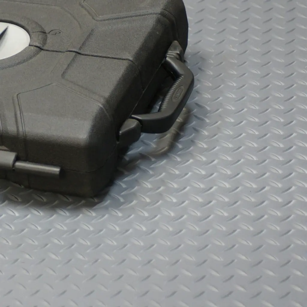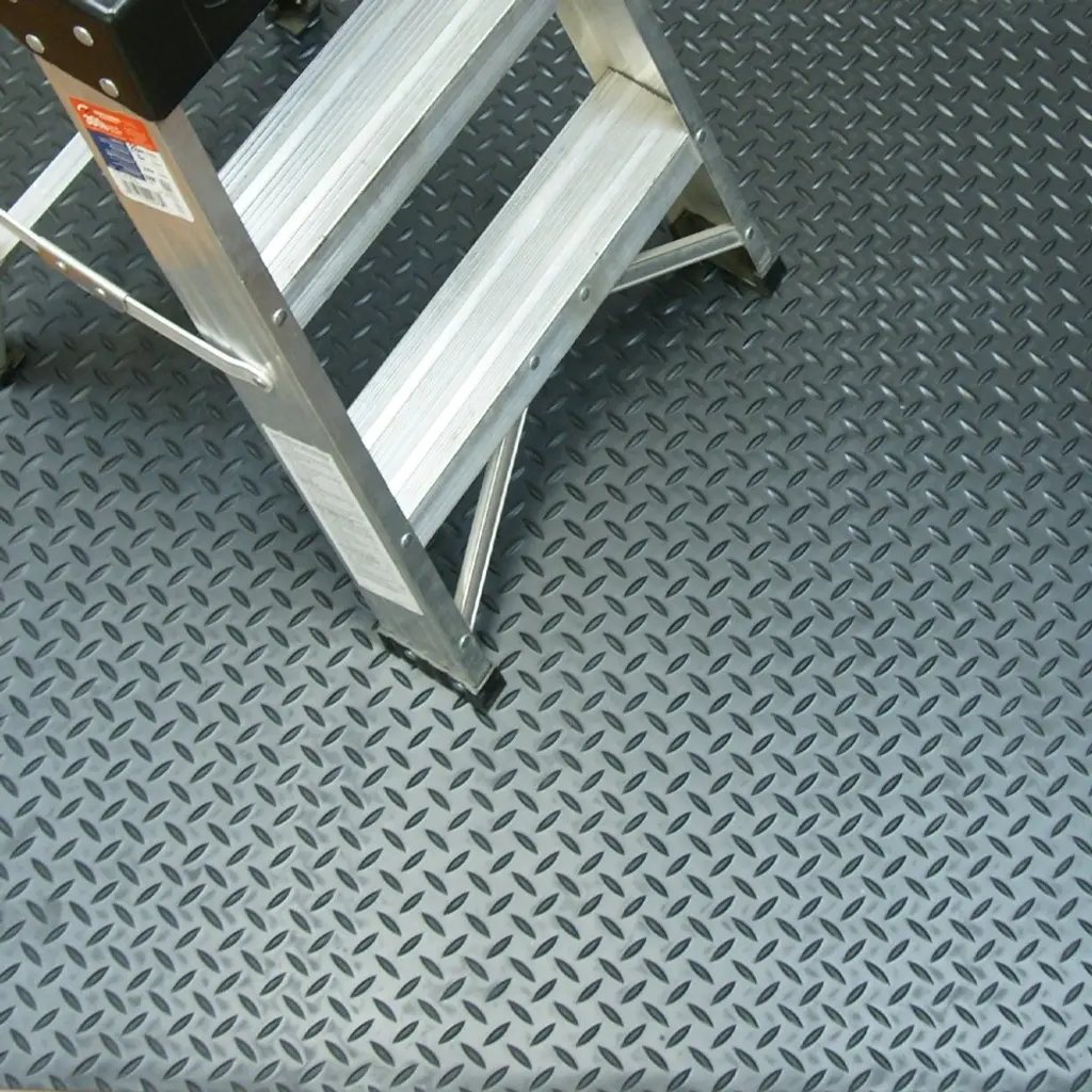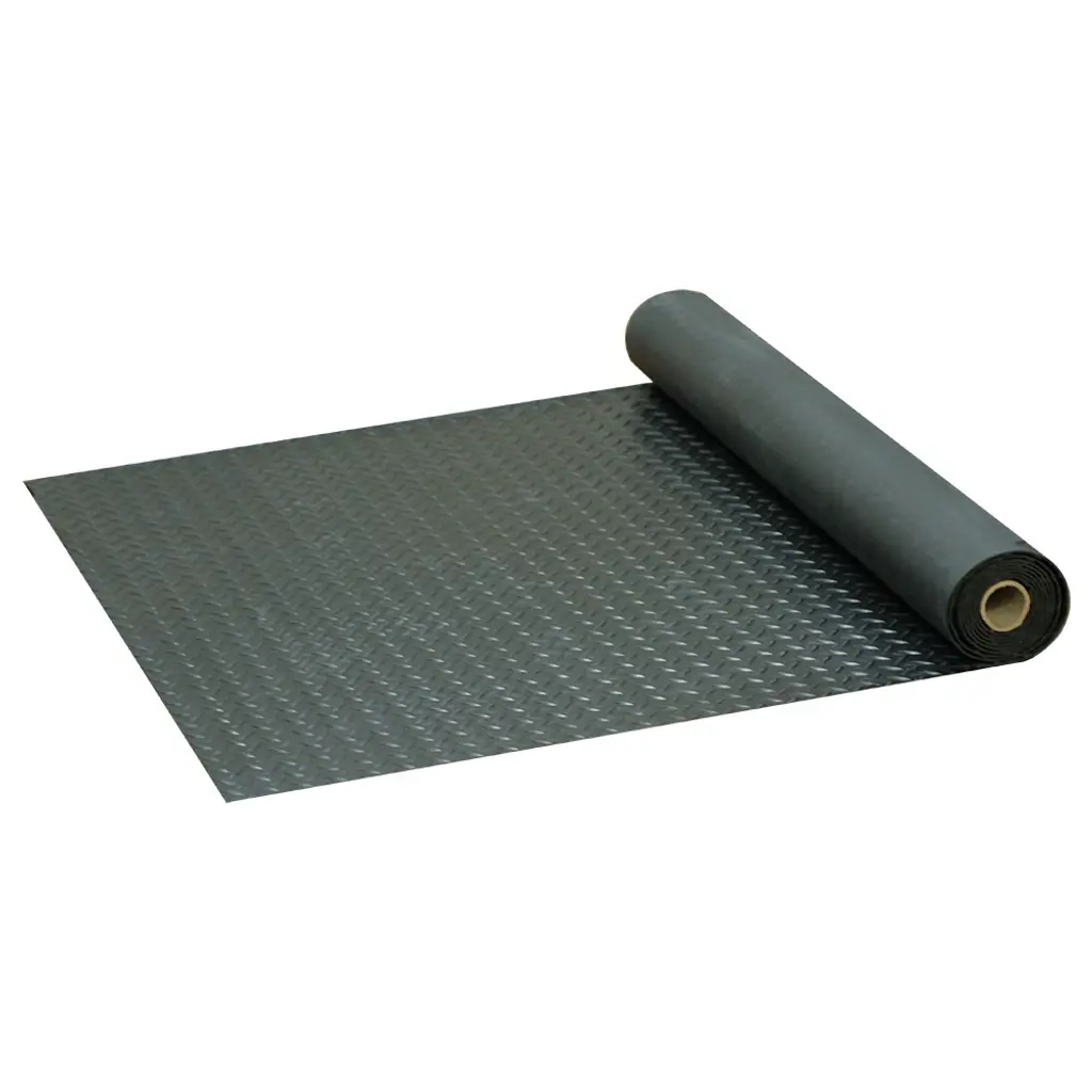 The Diamond-Plate Thermoplastic Flooring rolls are a durable form of non-slip matting with a sleek industrial aesthetic. The design is inspired by steel plate floors of the early 20th century, complete with a diamond pattern of thin, alternating protrusions. Traditional steel plate flooring is not often seen in the modern day due to impracticality, but the industrial aesthetic remains popular in a variety of industries. And the diamond-plating is not only attractive, but practical as well. Diamond-plate matting provides excellent slip-resistance, thanks to its traction-enhancing surface texture. The thin protrusions across the surface of the anti-slip mats can easily fit into shoe soles to "lock in" and secure footing. This provides multi-directional slip-resistance, even when the surface is wet, so you can work under wet conditions without problem. These diamond-plate mats are made from thermoplastic elastomer (TPE) for competitive durability and sub-floor protection. The thermoplastic material is 3.5mm thick and offers a non-permeable surface with resistance to moderate chemicals. The material is impervious to water, and you will never have to worry about the permeation of liquids. The diamond-plate rubber mats act as a protective barrier, shielding your sensitive sub-floors from harmful substances and abrasions. The synthetic rubber is great at absorbing impacts and vibrations, which could easily damage traditional flooring types like hardwood or tile. The Thermoplastic Diamond-Plate Mats are available in Black, Brown, and Dark Gray colors, and they come in a selection of pre-cut sizes to accommodate a space of any size.