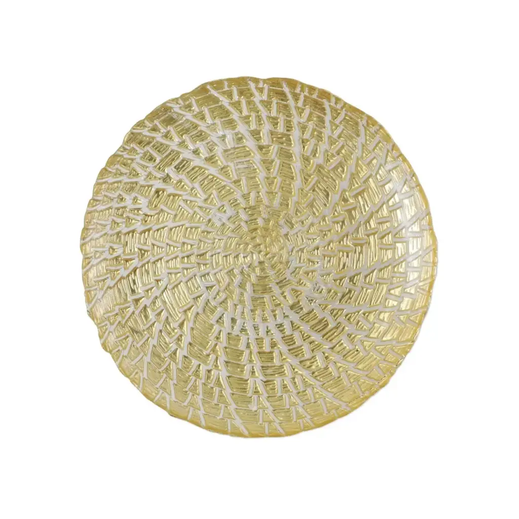 The Rufolo Glass Gold Crocodile Small Cake Stand brings luster to your table. The glass piece is encircled with glowing golden strands, and the embellishment is effortlessly beautiful. Since 1983, Vietri has specialized exclusively in Italian handcrafted ceramics, stainless and pewter flatware, mouth blown glassware, lamps, urns and planters. Families of artisans with 3 or 4 generations of history create these special pieces using centuries-old techniques. The subtle color from a paintbrush and the curving stroke of the artist's hand are never repeated in quite the same way, making each piece truly unique.