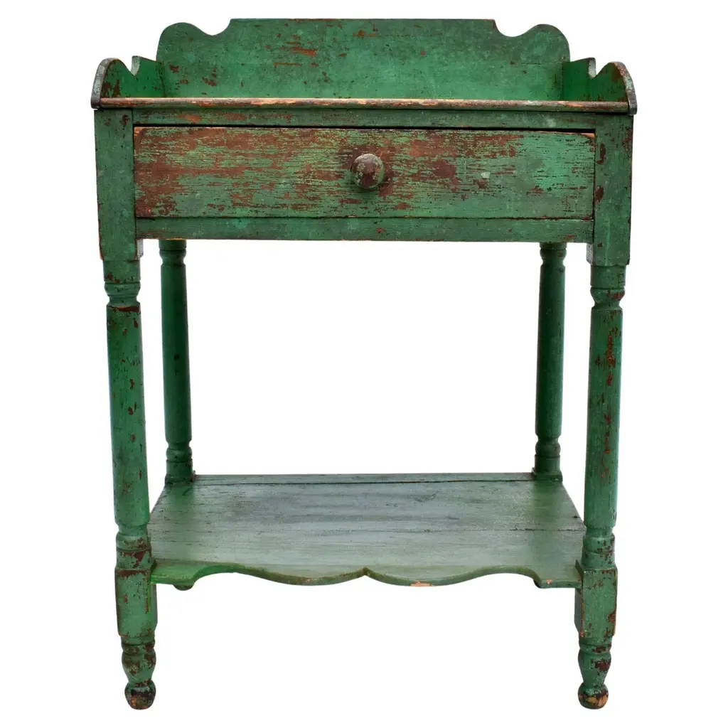 Rustic Antique Country Swedish Gustavian Distressed Painted Pine Stand
