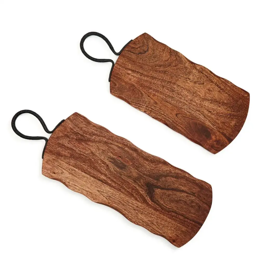Rustic Edge Set Of 2 Charcuterie Serving Boards With Hammered Iron Handle Acacia Wood/iron
