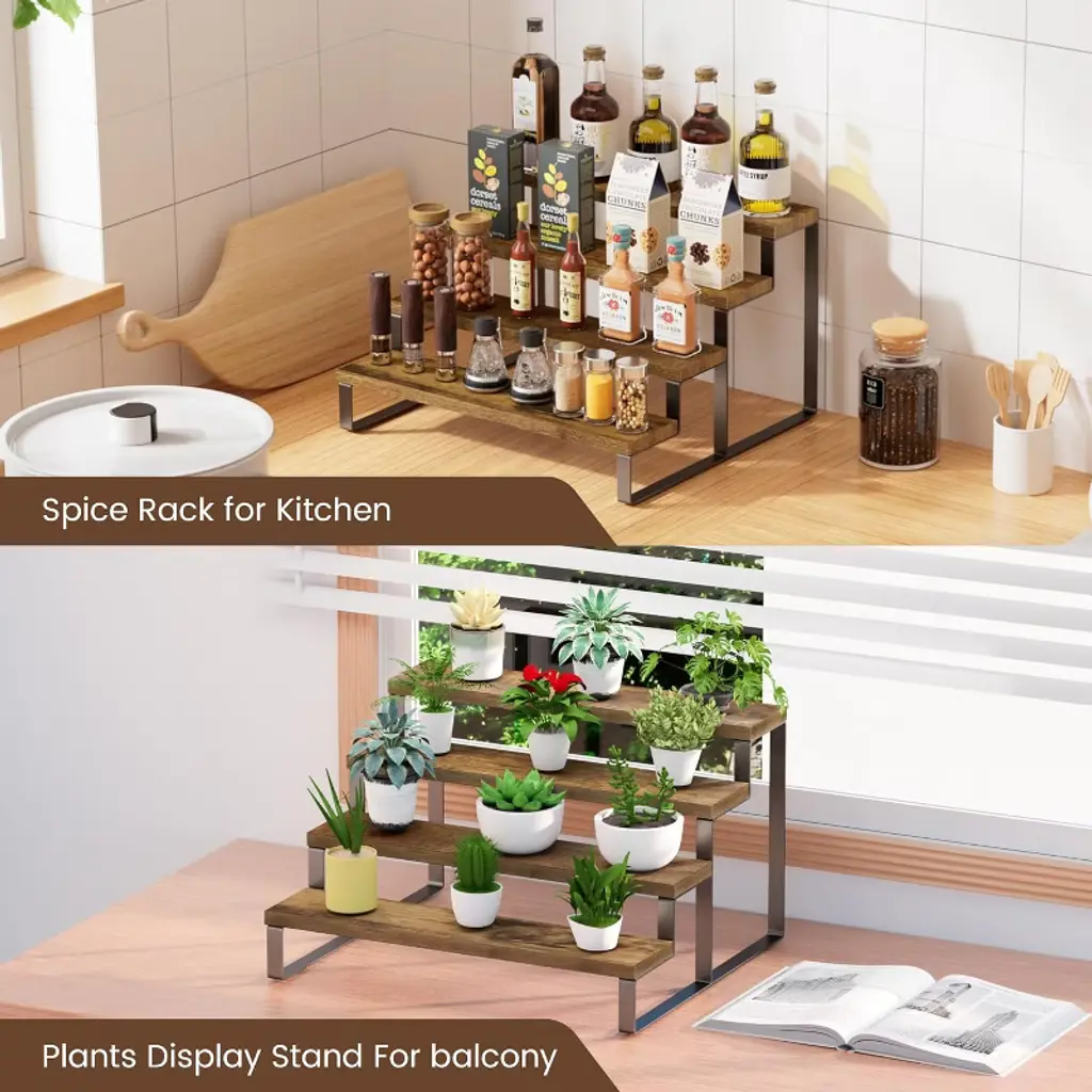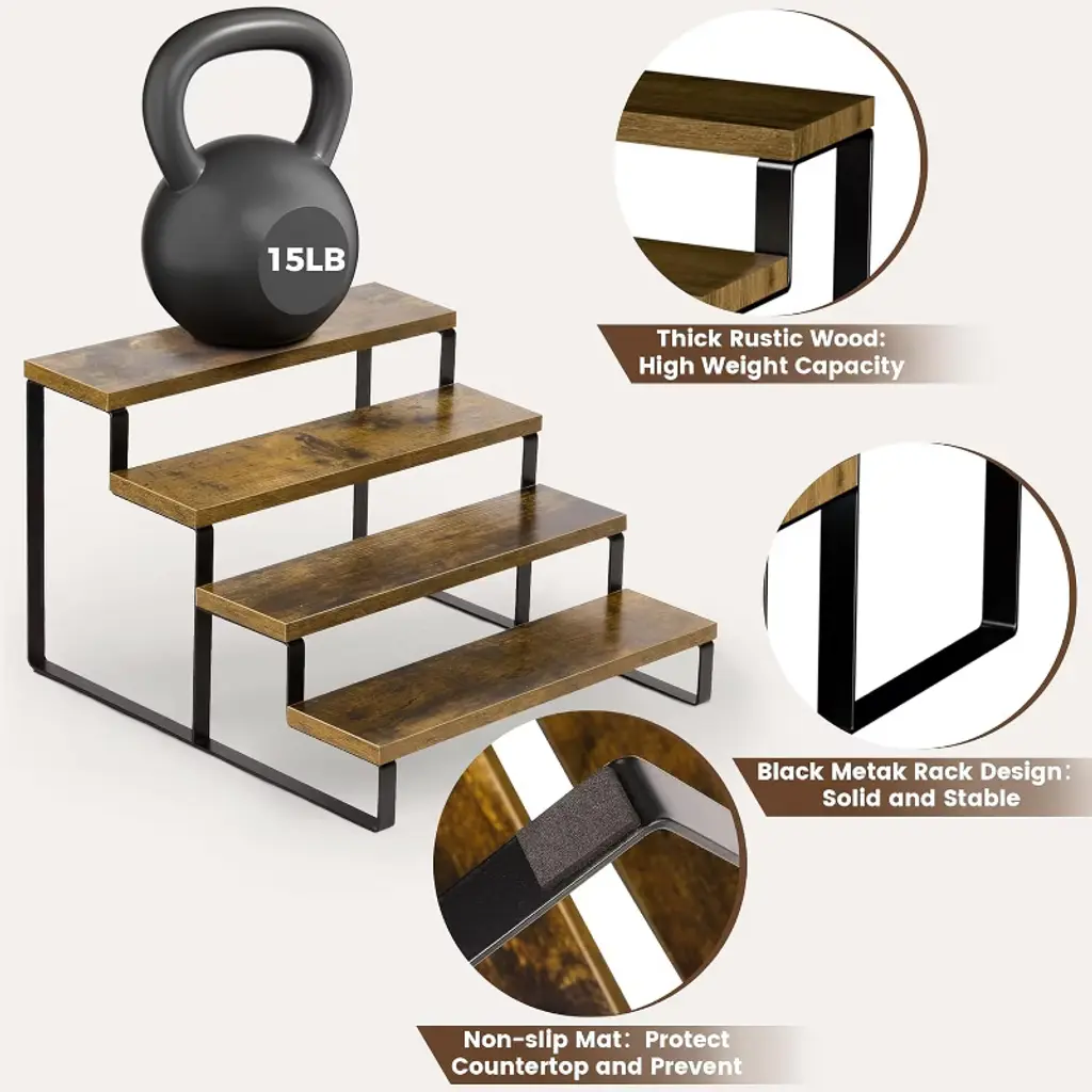 This tiered rack serves as a versatile display stand with vintage charm,ample multi-level capacity,and multifunctional utility¡ªwhether for baking enthusiasts showcasing desserts,beauty gurus organizing perfumes,or home users arranging spices.It keeps items neatly arranged with style.This vintage-inspired wooden 4-tier cupcake stand features a tiered design,natural wood grain,and flexible adaptability,making it a practical decorative piece for both home and party settings.It effortlessly meets the display and storage needs for a variety of small items.