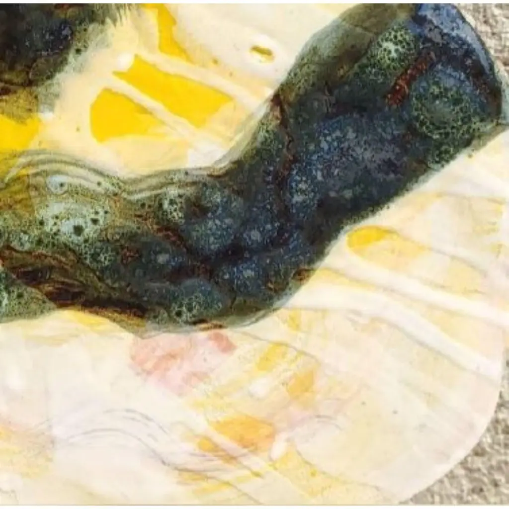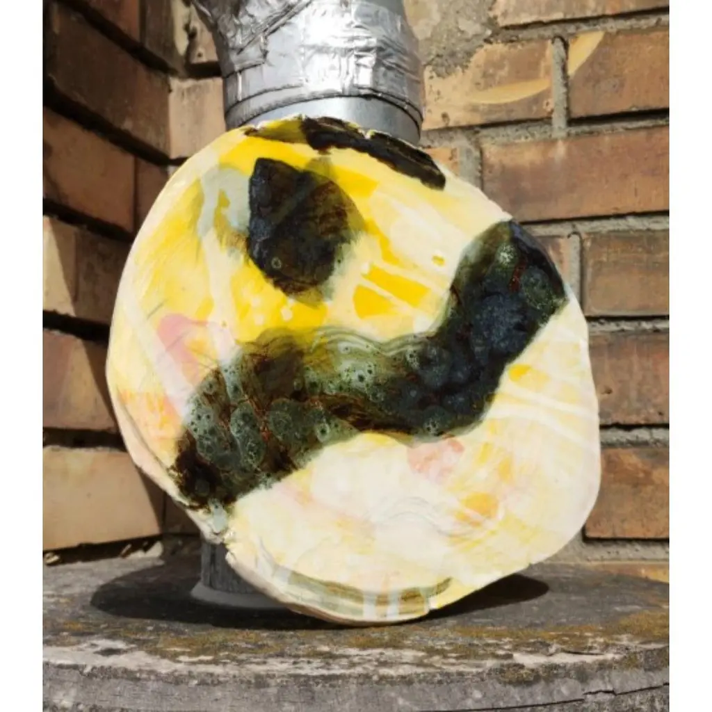 Rustyplate stoneware sculpture by OdatempoDimensions: W 24.5 x D 22.5 x H 0.007 cmMaterials: enameled white stoneware.Audrey Langlet is a Paris-based ceramist. Trained in fashion and graduated from the ENSAAMA (School of Art & Design), this young artist models stoneware and offers a variety of unique containers. Her inspiration draws on her suburban roots, combining a concrete world with urban roughness.The raw and grey aspect of the megalopolis contrasts with a sometimes exacerbated exotic dream to give birth to free shaped pieces, like debris from a deserted beach, but still loaded with a strong city spirit.