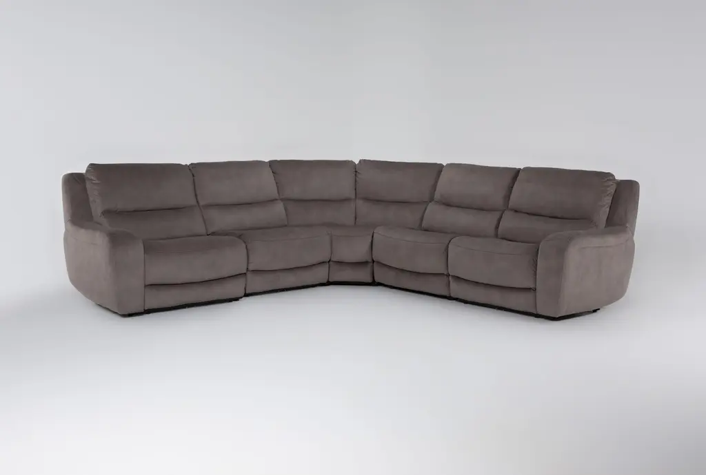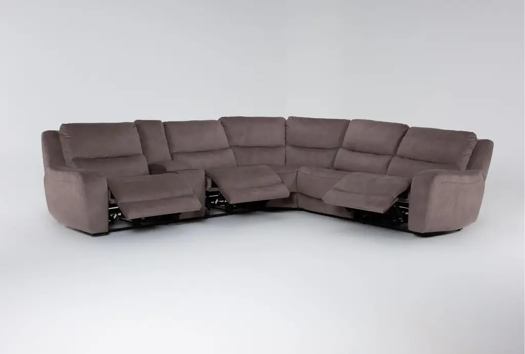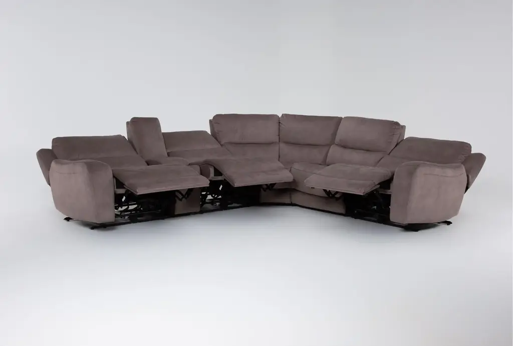 Ryder Grey 134" 6 Piece Power Reclining Modular Sectional With Storage Console Cupholders & Usb | Fabric | Console