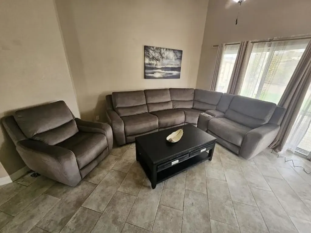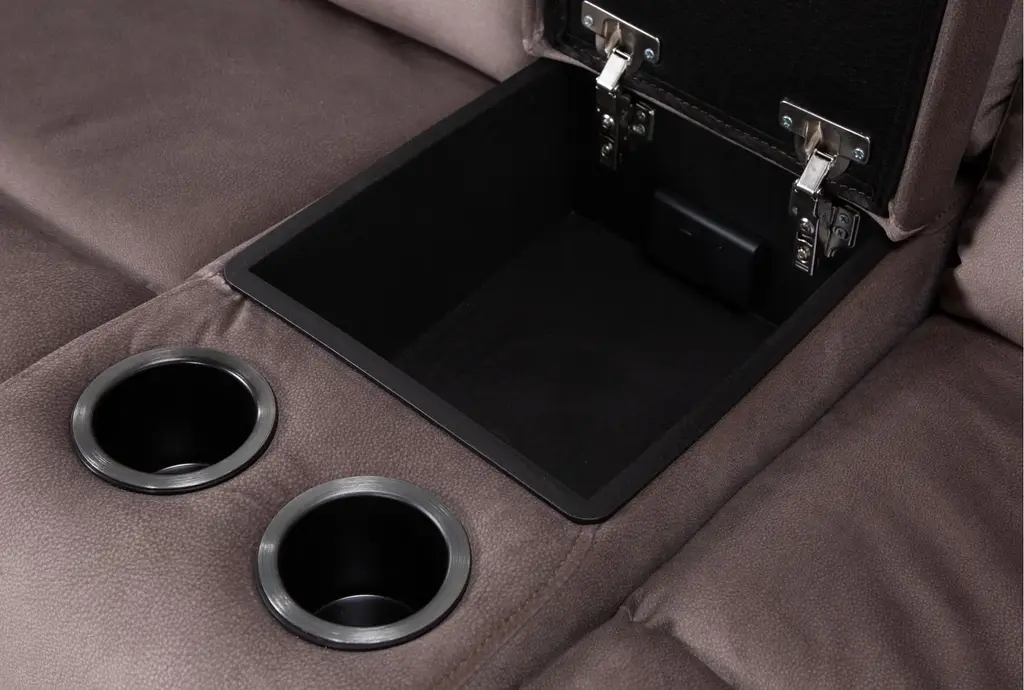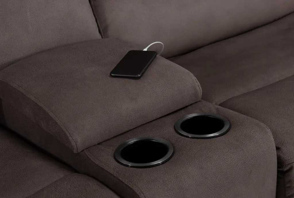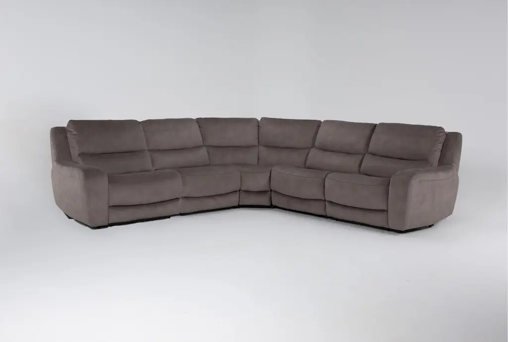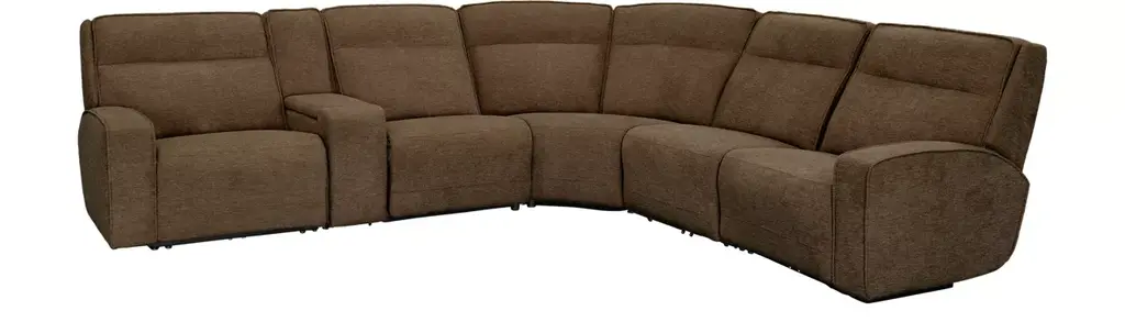 Introducing the Ryder Grey 134" 6 Piece Power Reclining Modular Sectional, designed to elevate your living room with comfort and functionality. This sectional features a reversible orientation allowing you to customize your setup according to your space. Upholstered in 100% terylene fabric, the Aspen Walnut color adds a touch of sophistication to your home.