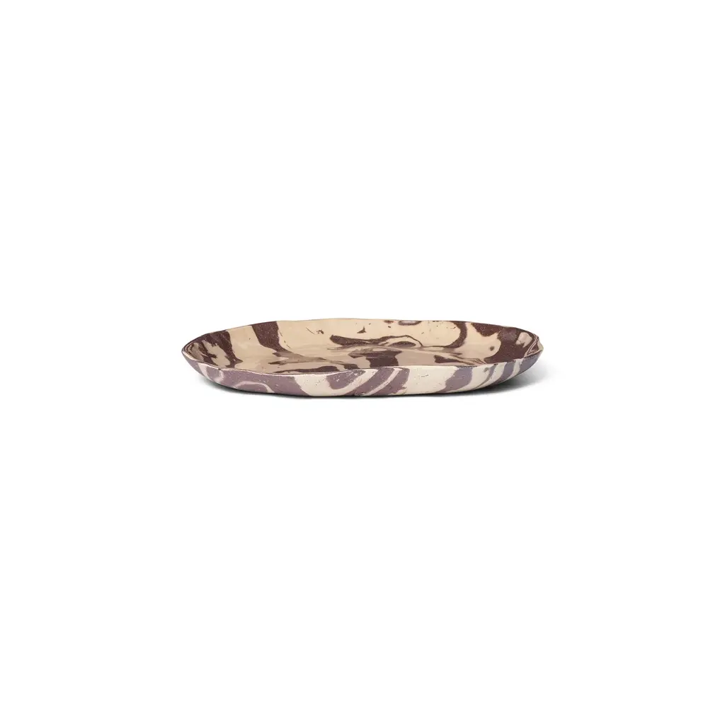 Named for its undulating swirls, the Ryu Platter from Ferm Living is a unique addition to any modern tabletop. Crafted using the traditional 'Nerikomi' technique, two different clays are fused together by hand, each piece boasting intricate marble-like patterns that are one-of-a-kind. Elevate your serveware collection or display on your wall as a captivating statement piece, letting the artisanal quality of the clay shine through. Highlights