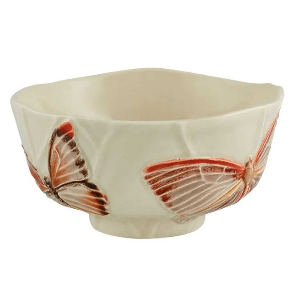 Meticulously hand-painted butterflies adorn this pair of earthenware bowls, calling attention to their gracefully irregular rims and textural details. Part of supermodel Claudia Schiffer's collaboration with Bordallo Pinheiro, the bowls are dishwasher safe and microwave safe, so you can use them every day.