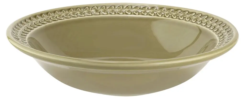 A classic addition to the table, these pasta bowls are each crafted of fine earthenware with an embossed laurel leaf border and moss-green glaze. They're dishwasher and microwave safe too, adding to their versatility. Made in Stoke-on-Trent, England.