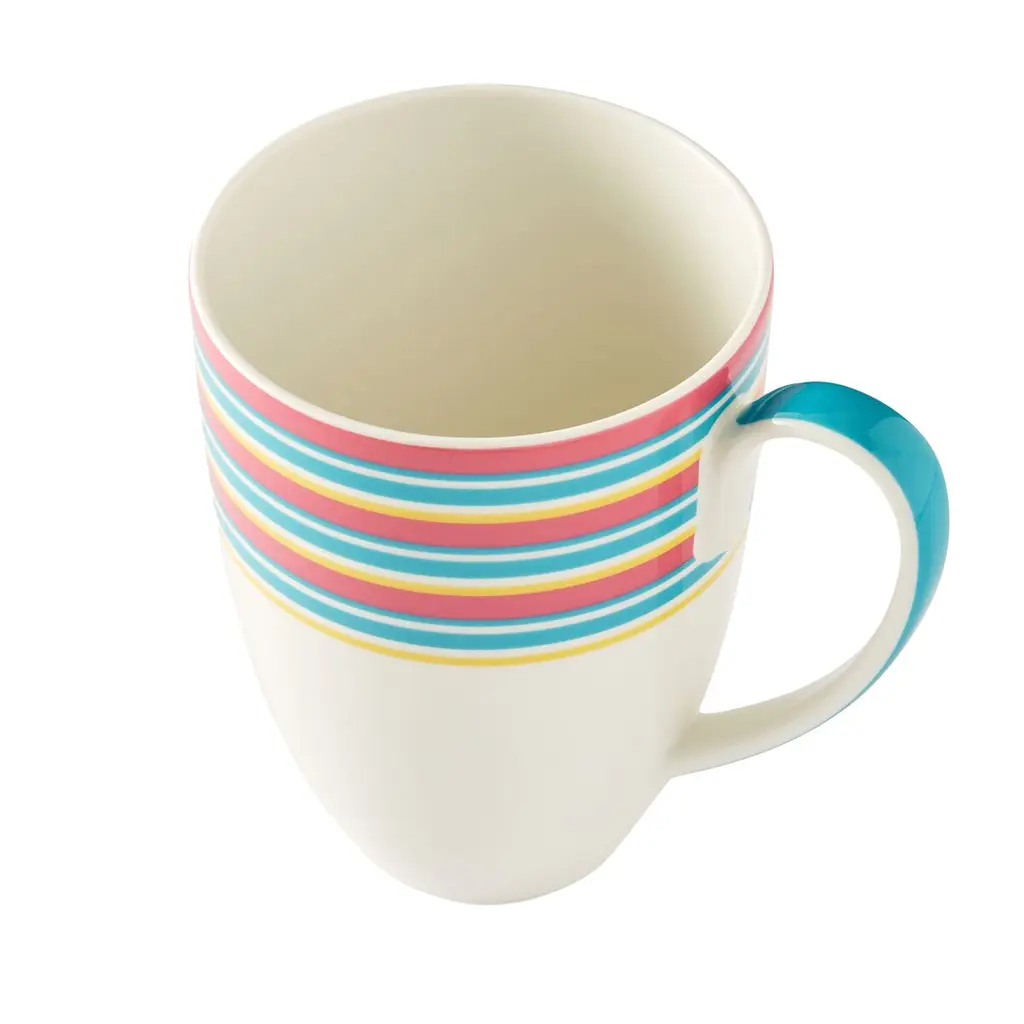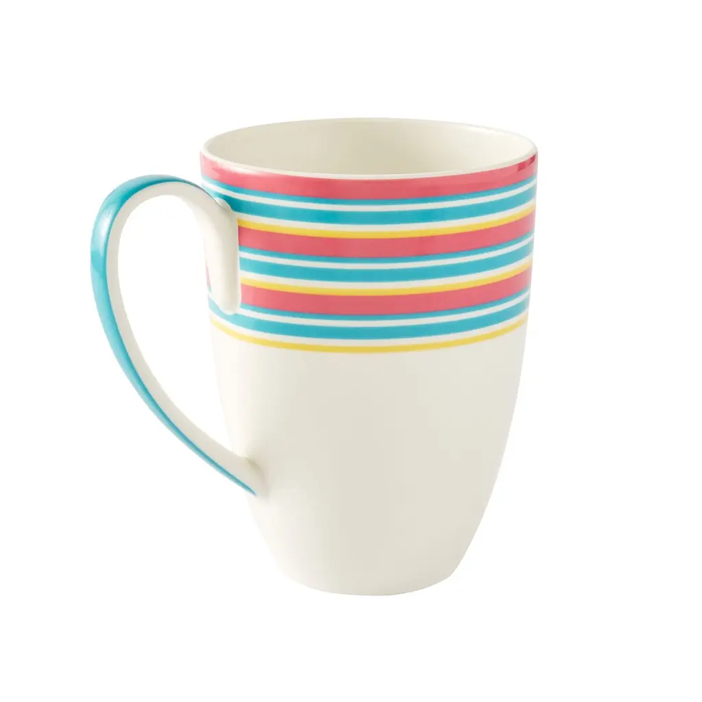 Crafted from the finest porcelain, these colorful set of 4 Calypso Stripe mugs are a must-have for your collection. Stripes adorn the top of the mugs adding a vibrant touch to your tea and coffee breaks. Dishwasher and microwave safe. Coordinates with the rest of the Calypso collection.