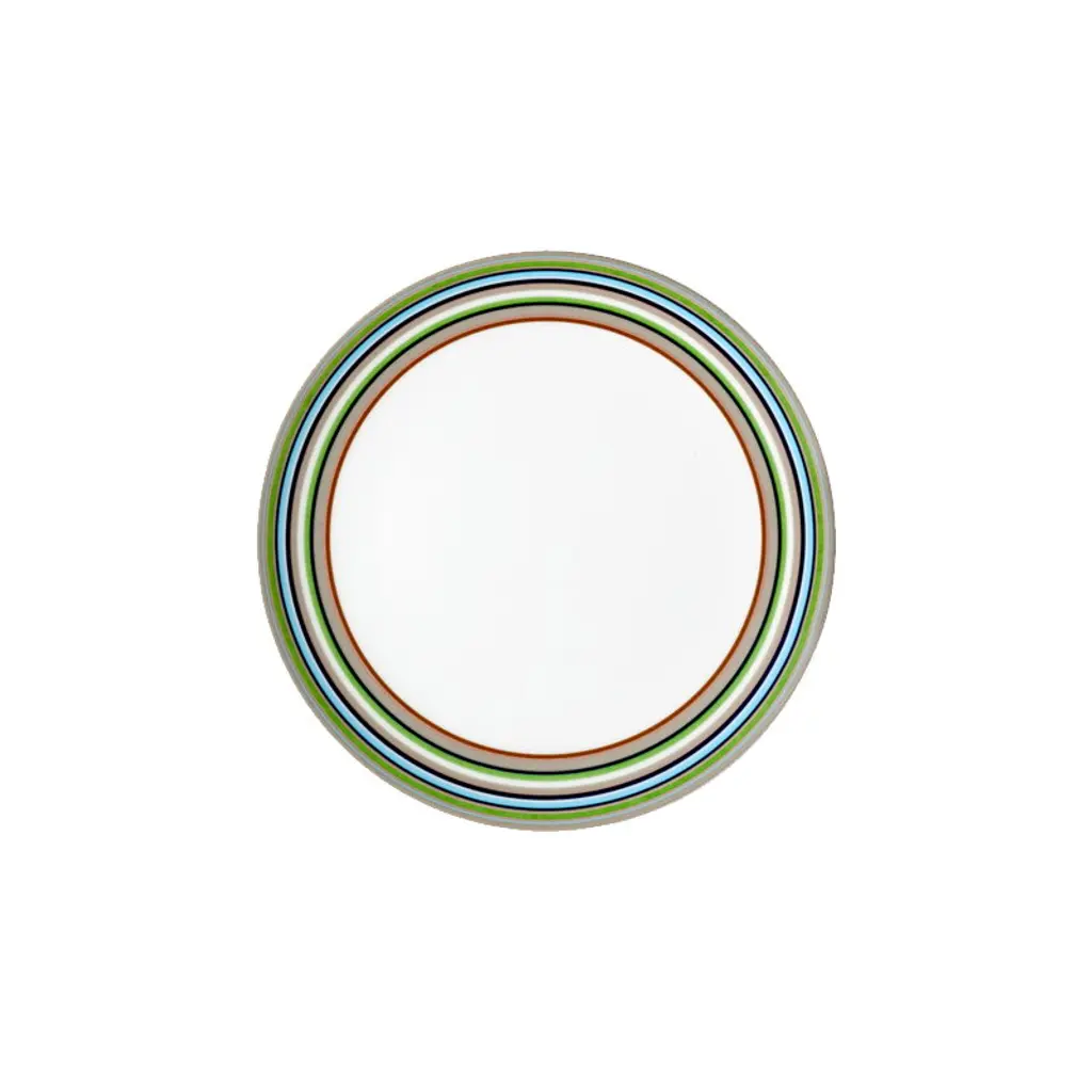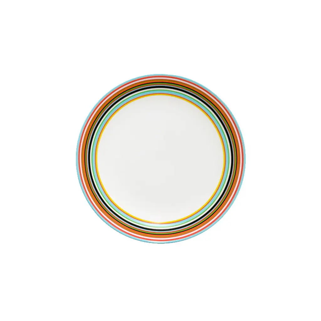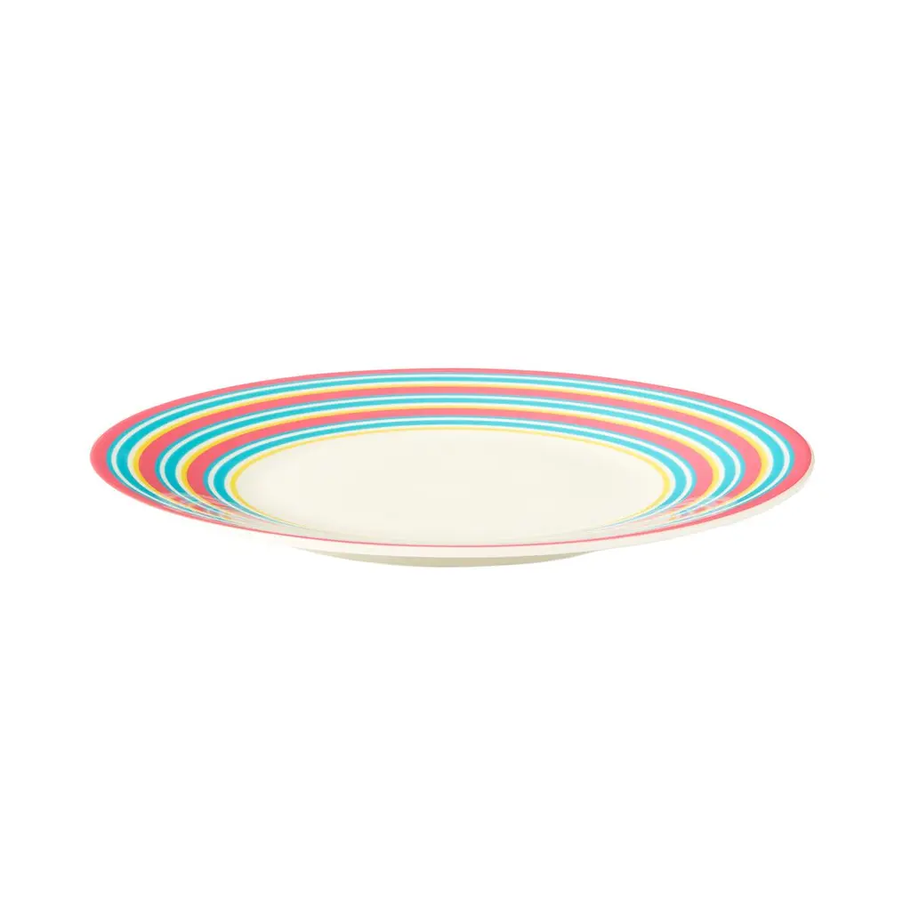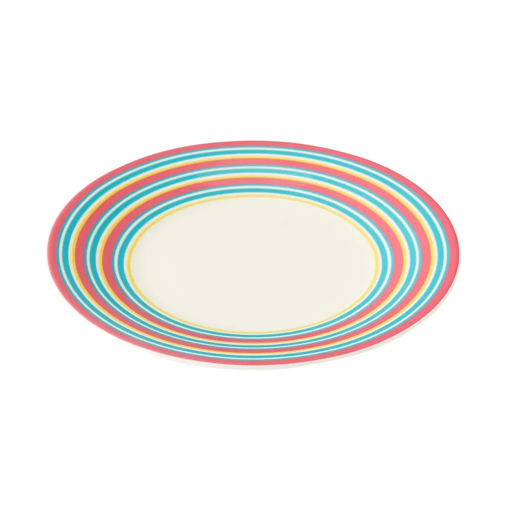Add vibrant color to your table with these set of 4 salad plates from the collection. Featuring stripes around the border, these porcelain plates will spice up any occasion. Dishwasher and microwave safe. Coordinates with the rest of the collection.