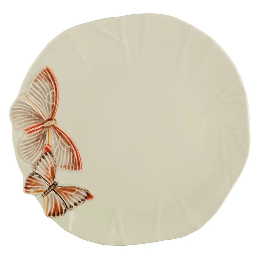 A duo of meticulously hand-painted butterflies adorn each of the four dinner plates in this set, calling attention to their beautifully irregular edges edges. Part of supermodel Claudia Schiffer's collaboration with Bordallo Pinheiro, the earthenware dishes were crafted using time-honored artisanal techniques. Because they're dishwasher safe and microwave safe, you can use them every day.