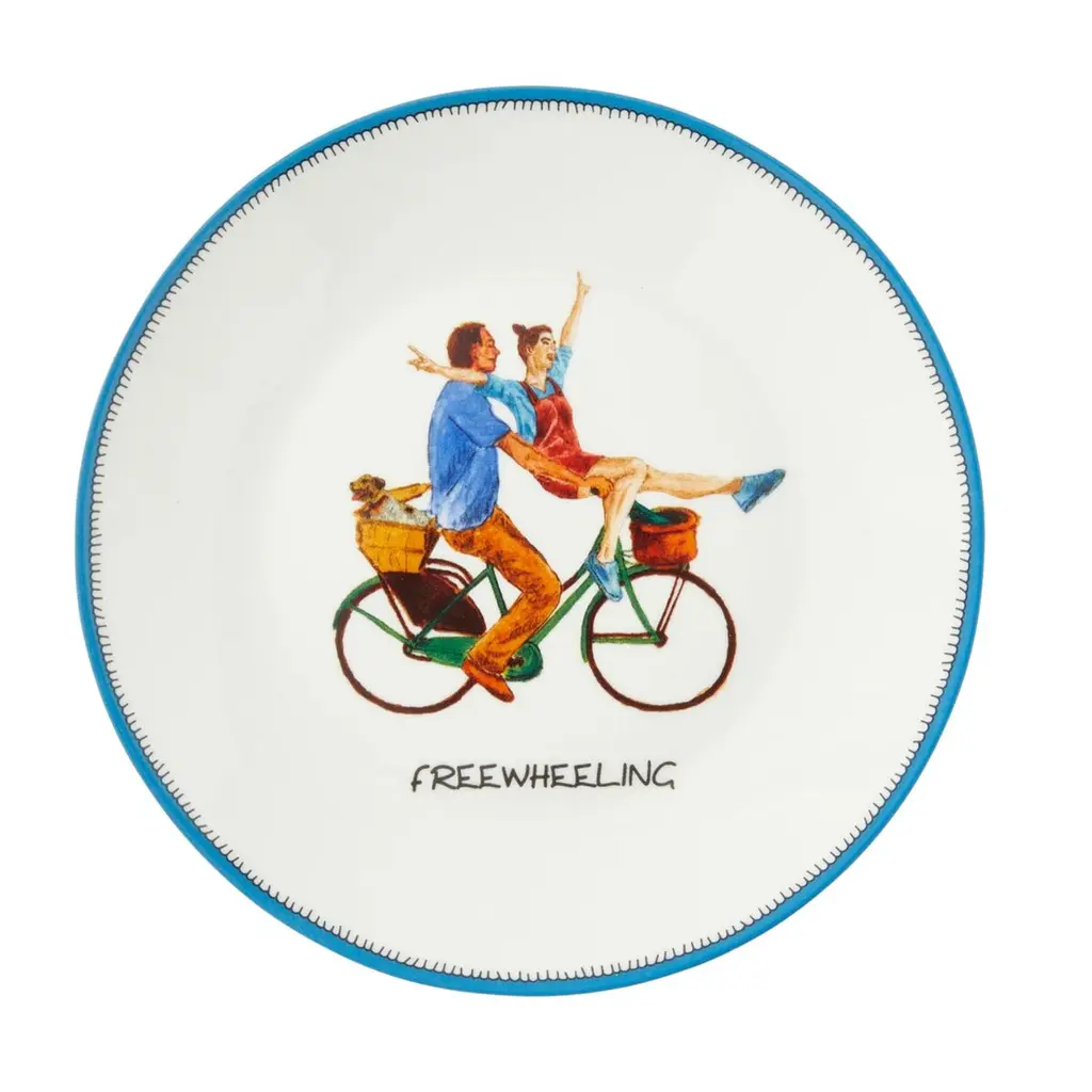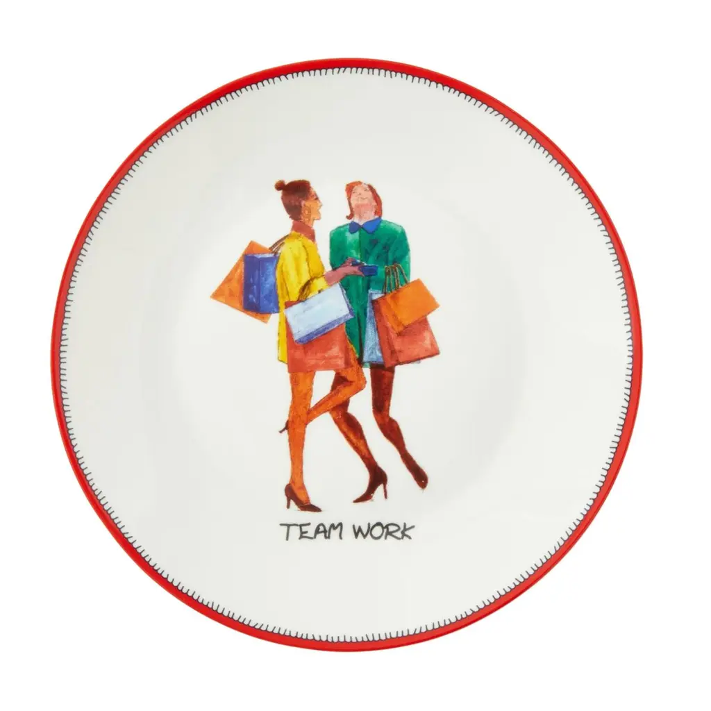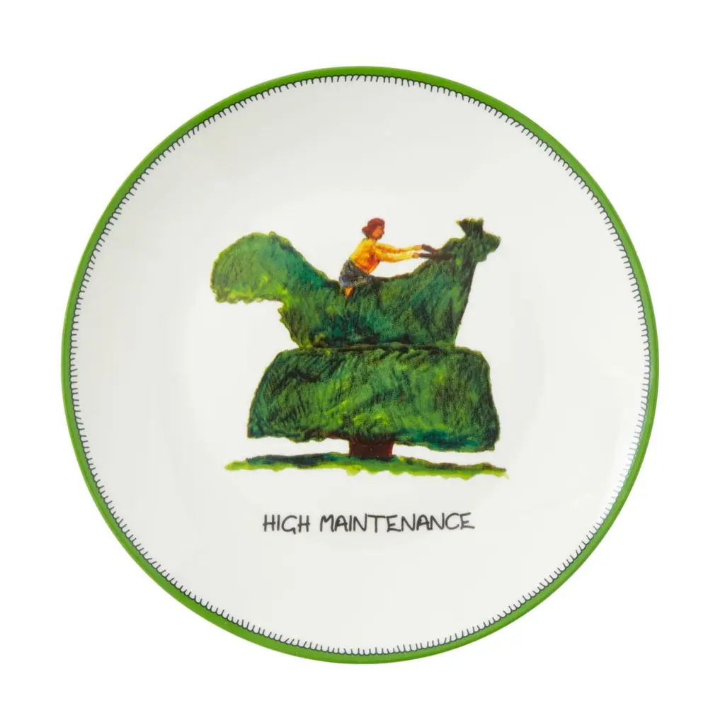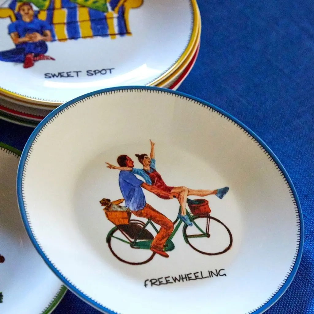 Bring color and whimsy to the table with these vibrant tidbit plates. A set of 4, each plate features a beautiful painted illustration alongside a cheeky tagline to make you smile. Perfect plates for enjoying a slice or two of cake with friends, plating up a teatime treat just for you, and as a gift for someone special. Made from fine china, the plates can be placed in the dishwasher after use, making them perfect for everyday use.