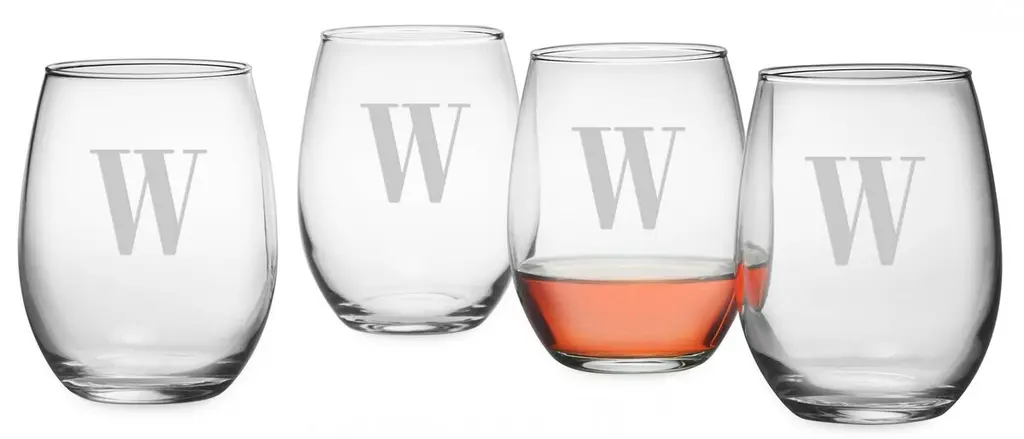 Made in the USA, the four stemless wineglasses that make up this set boast a timeless monogram that is sand-etched by hand. As well as being ideal for just about any occasion, the tumblers are dishwasher safe.