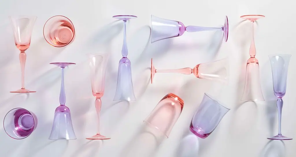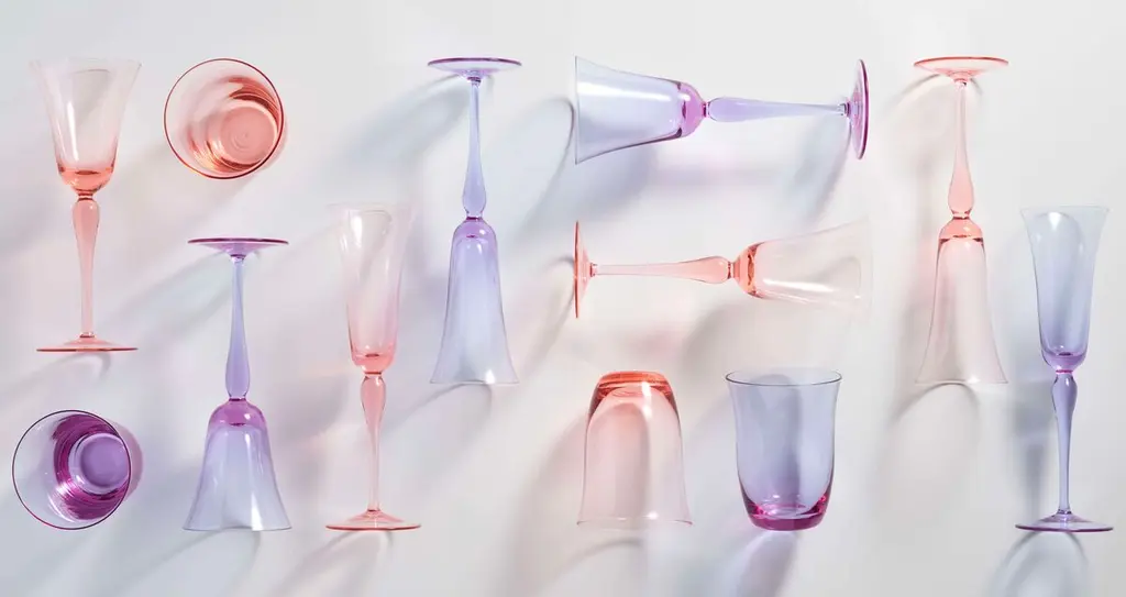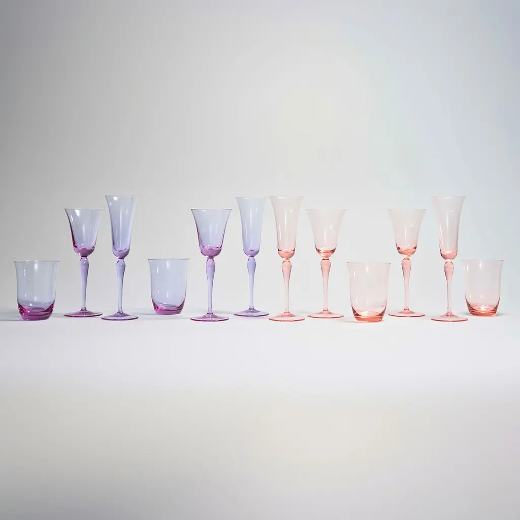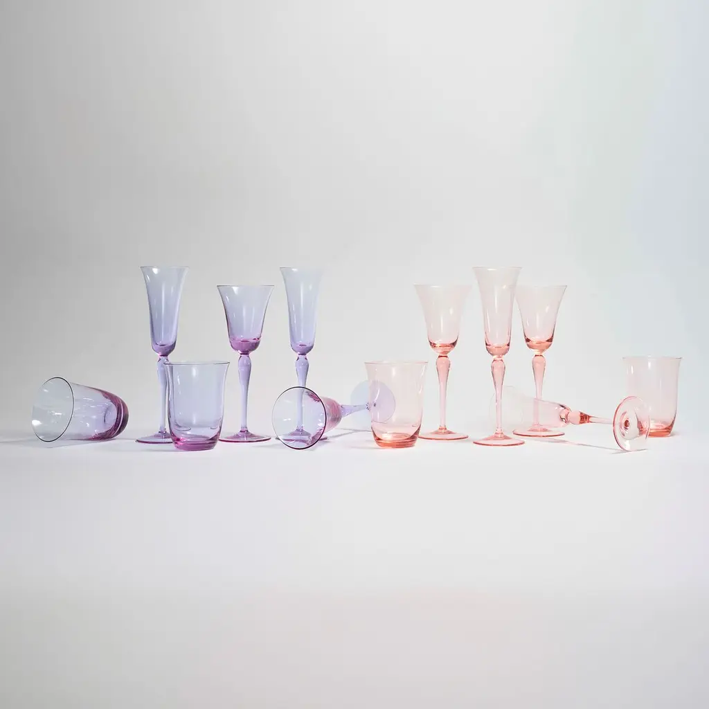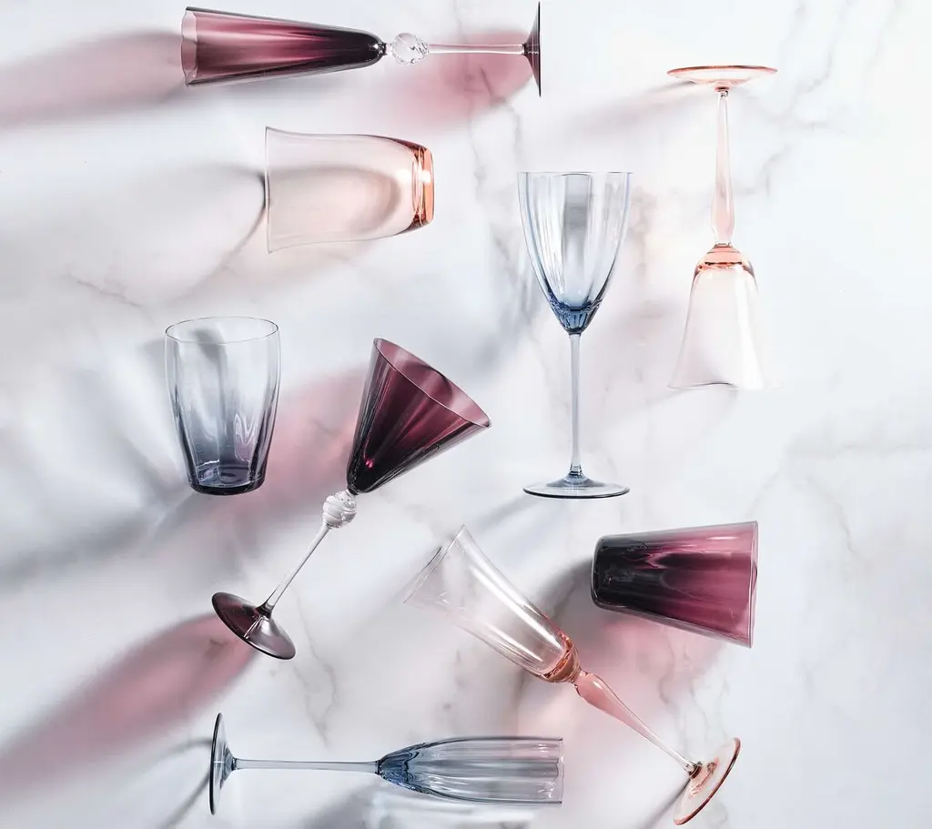 The hand-crafted, mouth-blown Ophelia Wine Glass brings style and class to any table. The sophisticated curved design translates from the tulip-shaped mouth of the glass through the curvature of the stem. These effortlessly chic wine glasses are hand-made from glass in the Czech Republic.