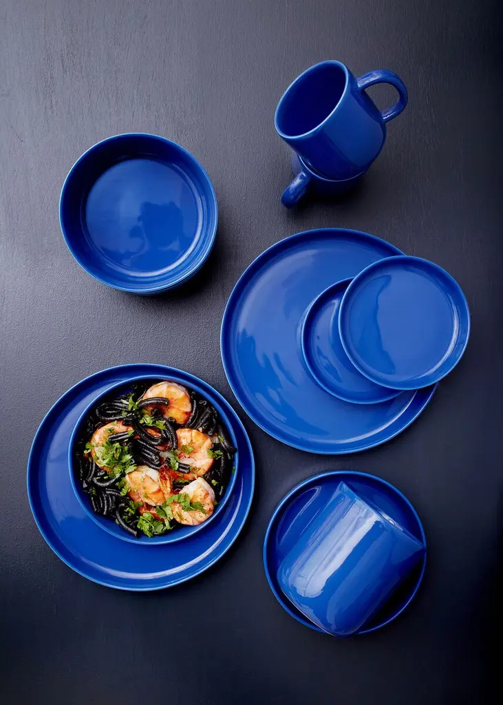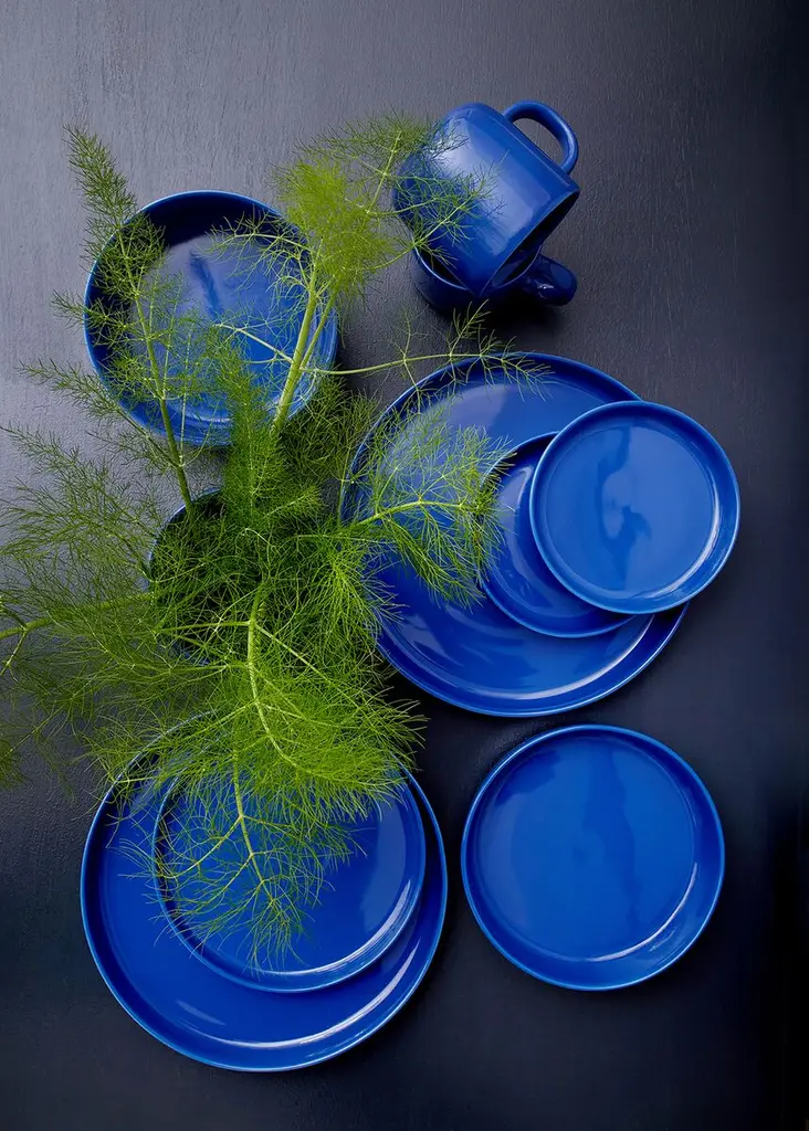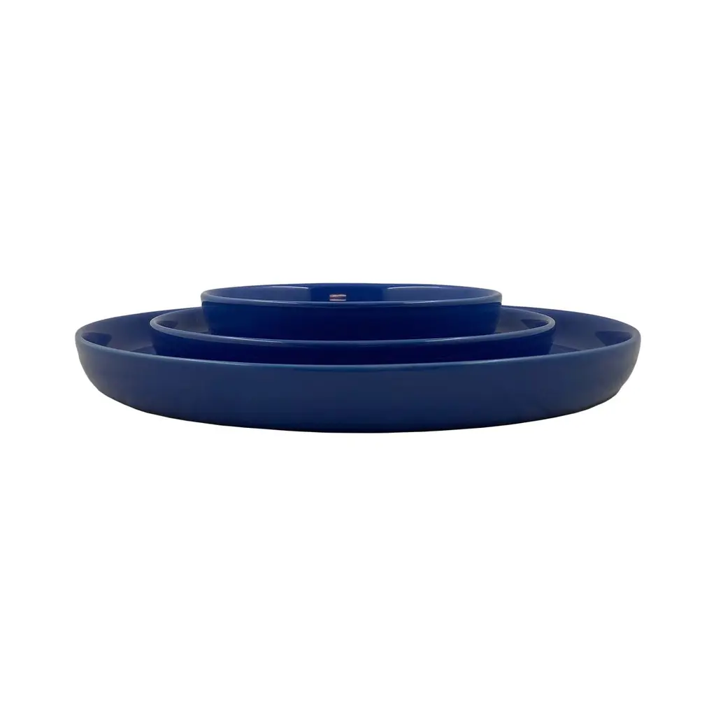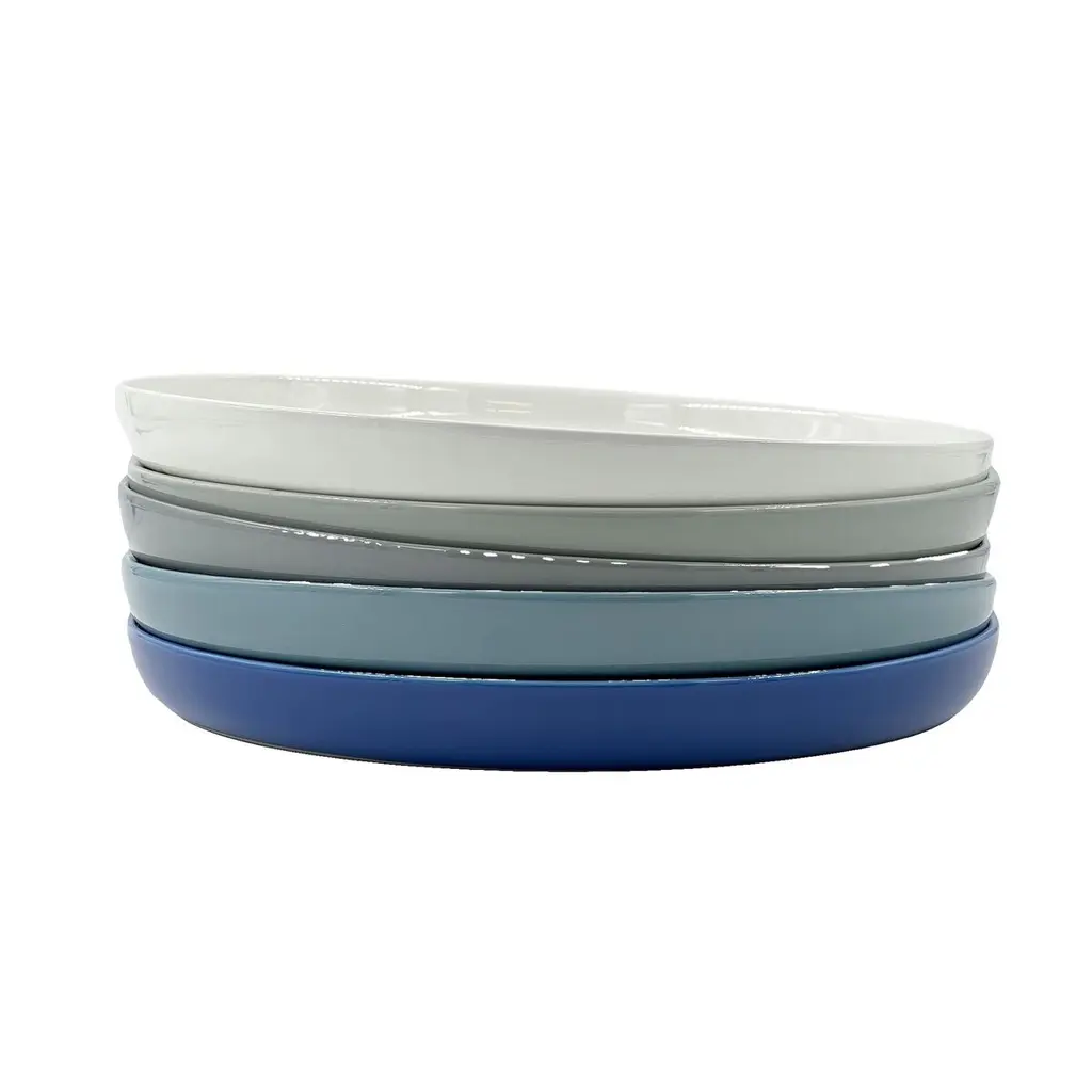 Inspired by the wonderful pottery of Southwest France, the Reims Collection is introduced with a variety of pieces, such as the Mezze Plate and Utensil Cup. This is a family full of possibilities for use in your kitchen, and the deeply saturated colors will make it an extremely compelling component of any tablescape. Available in five colors. Microwave and Dishwasher Safe. Set includes 4 Large Plates. 10.6"D x 1"H.