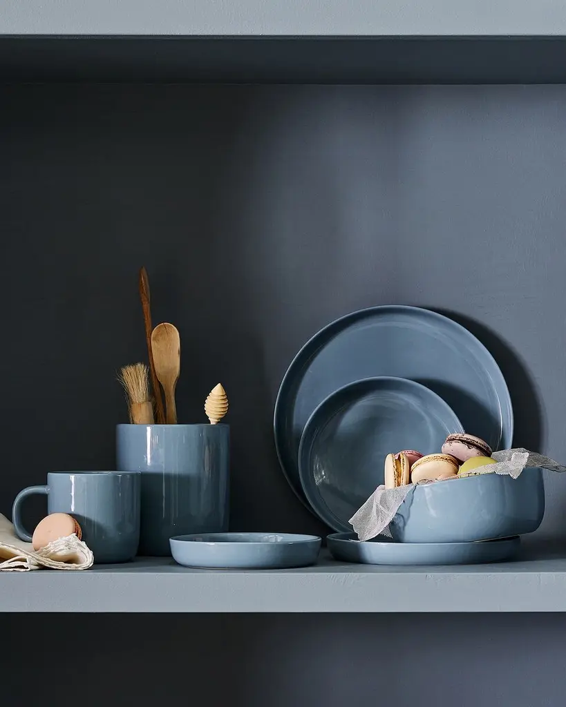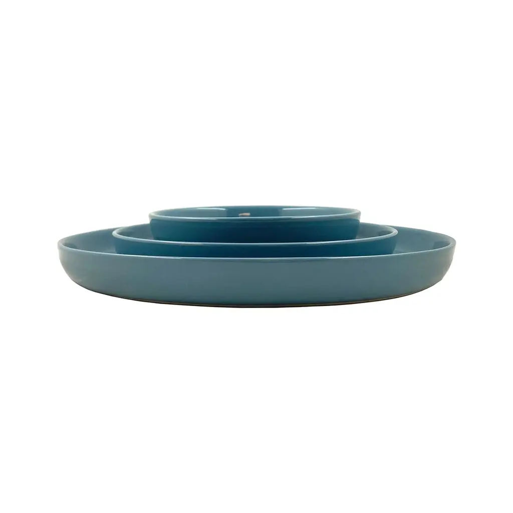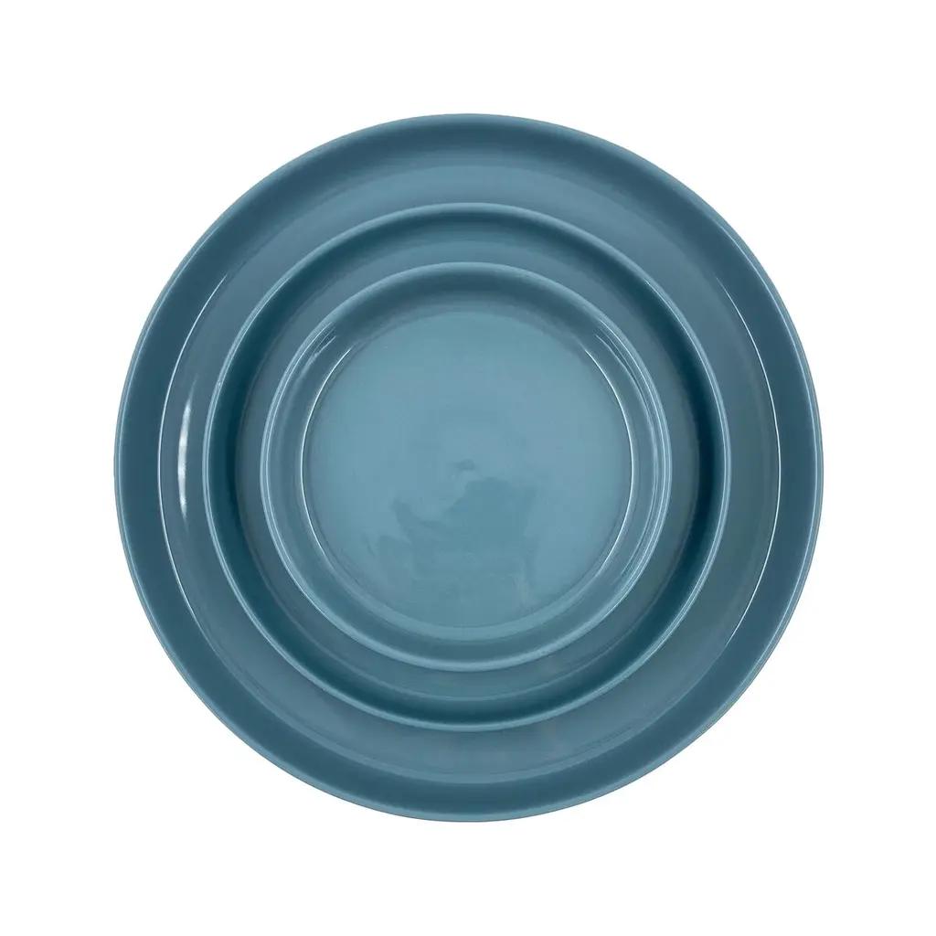 Inspired by the wonderful pottery of Southwest France, the Reims Collection is introduced with a variety of pieces, such as the Mezze Plate and Utensil Cup. This is a family full of possibilities for use in your kitchen, and the deeply saturated colors will make it an extremely compelling component of any tablescape. Available in five colors. Microwave and Dishwasher Safe. Set includes 4 Large Plates. 10.6"D x 1"H.