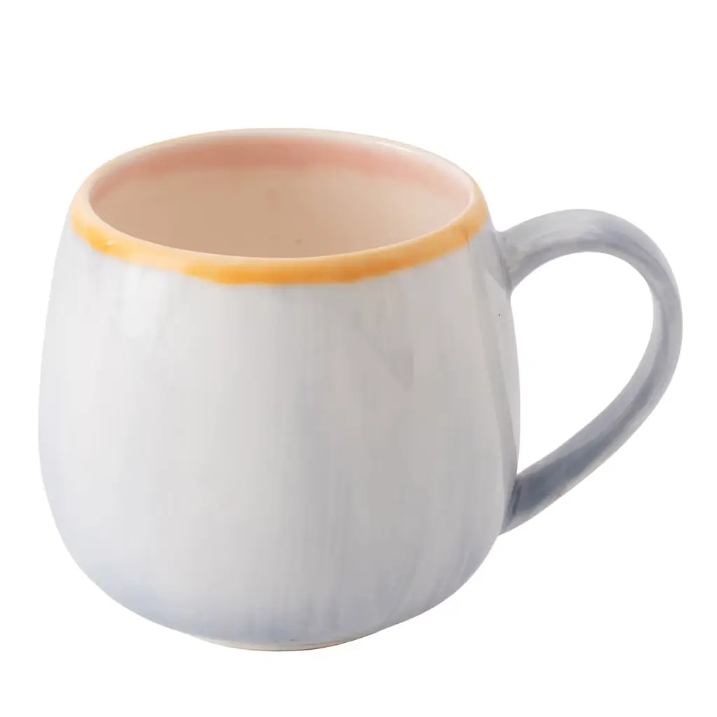 Simple, elegant, and versatile, these two-tone mugs are crafted of porcelain and finished with a hand-applied glaze.