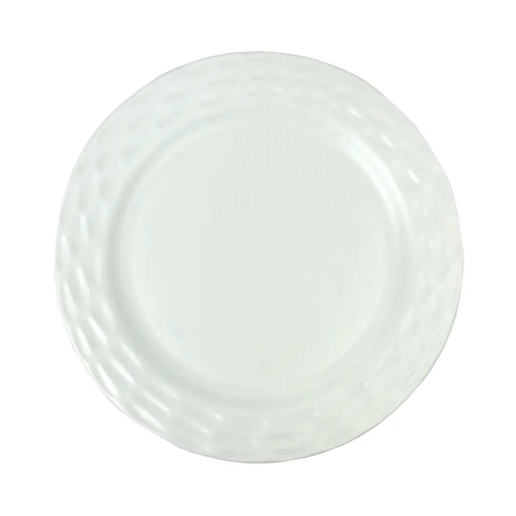 Suitable for any style of decor, these dinner plates are crafted of porcelain with ribbed detailing and a clean white glaze.