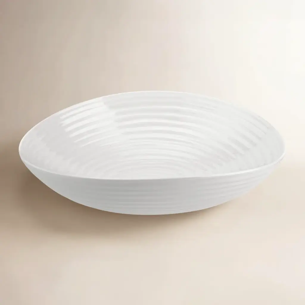 This modern round pasta dish will complement any kitchen decor. The vibrant colors of your famous sauce will pop against this white porcelain piece.