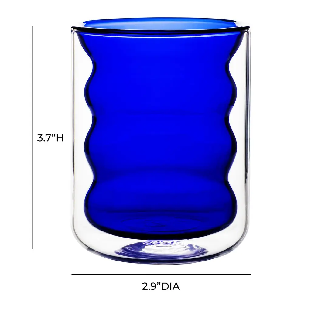 Infuse your table setting with whimsy using the vibrant drinking glasses, adorned with playful Memphis squiggles that spark joy with every sip. Available in multiple color options, these glasses offer an opportunity to mix and match for a personalized and eclectic look. They're dishwasher-safe to ensure easy cleanup, making them a functional and stylish addition to your tablescape.