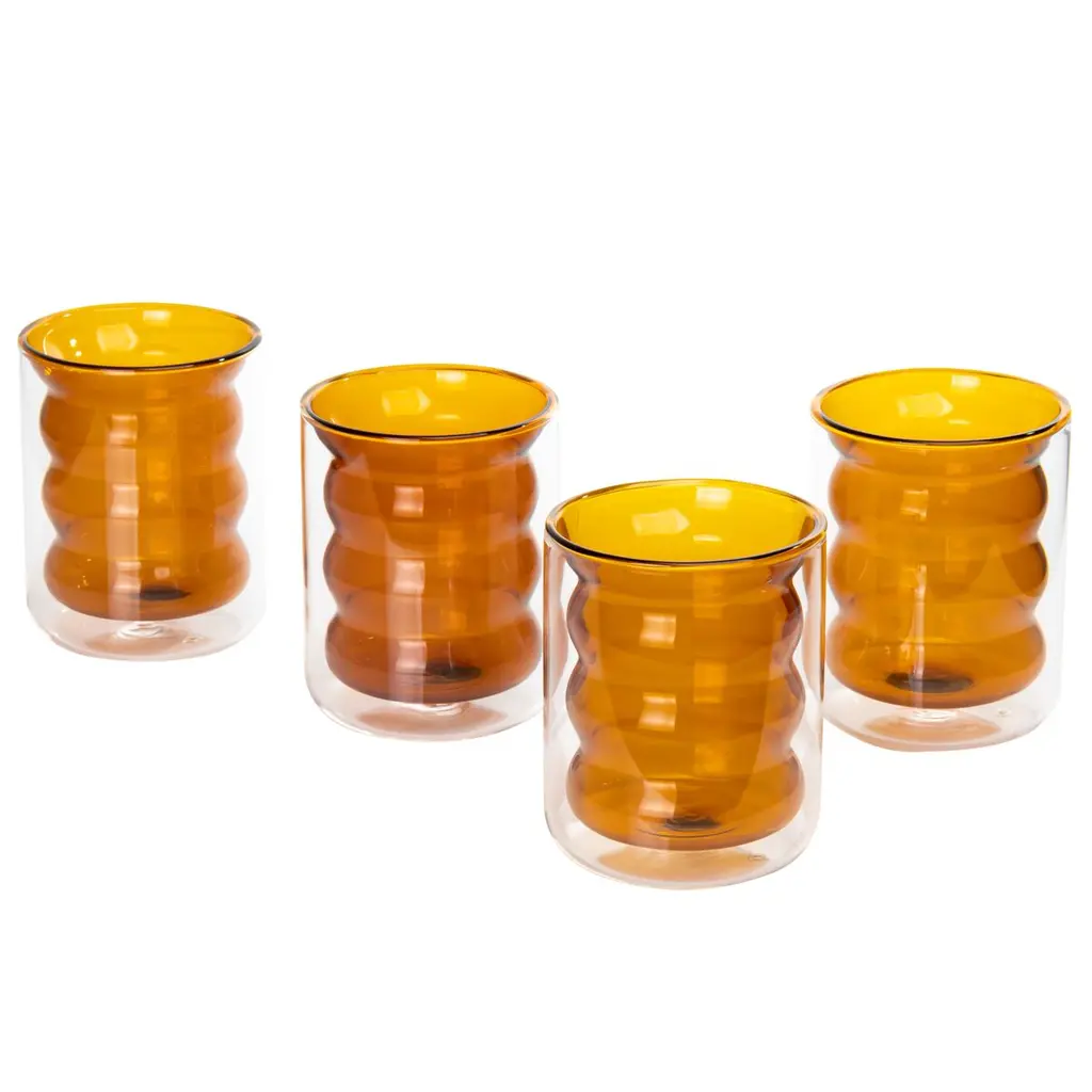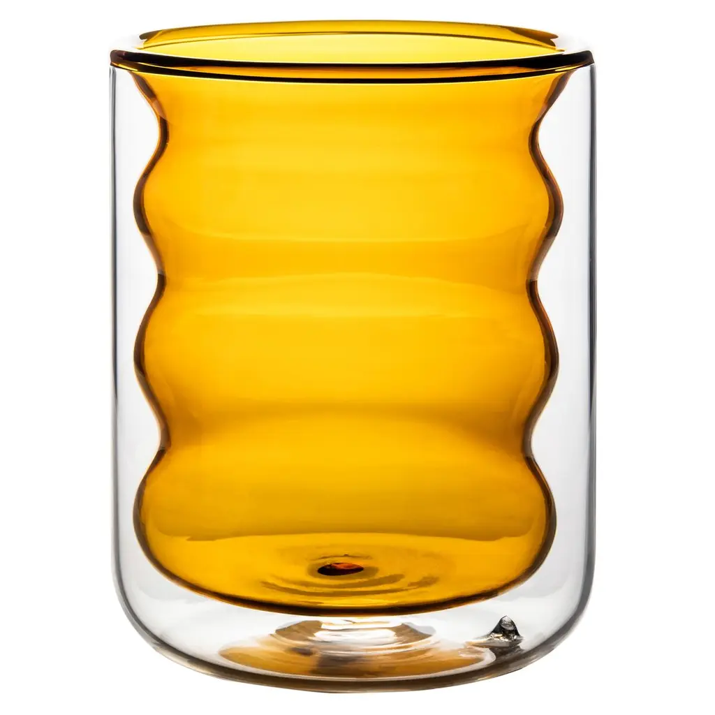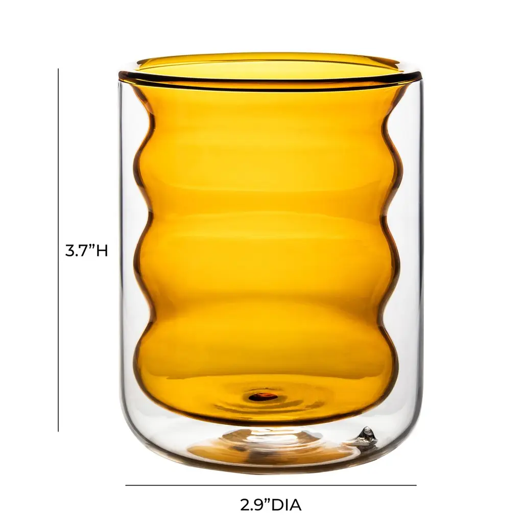 Infuse your table setting with whimsy using the vibrant drinking glasses, adorned with playful Memphis squiggles that spark joy with every sip. Available in multiple color options, these glasses offer an opportunity to mix and match for a personalized and eclectic look. They're dishwasher-safe to ensure easy cleanup, making them a functional and stylish addition to your tablescape.