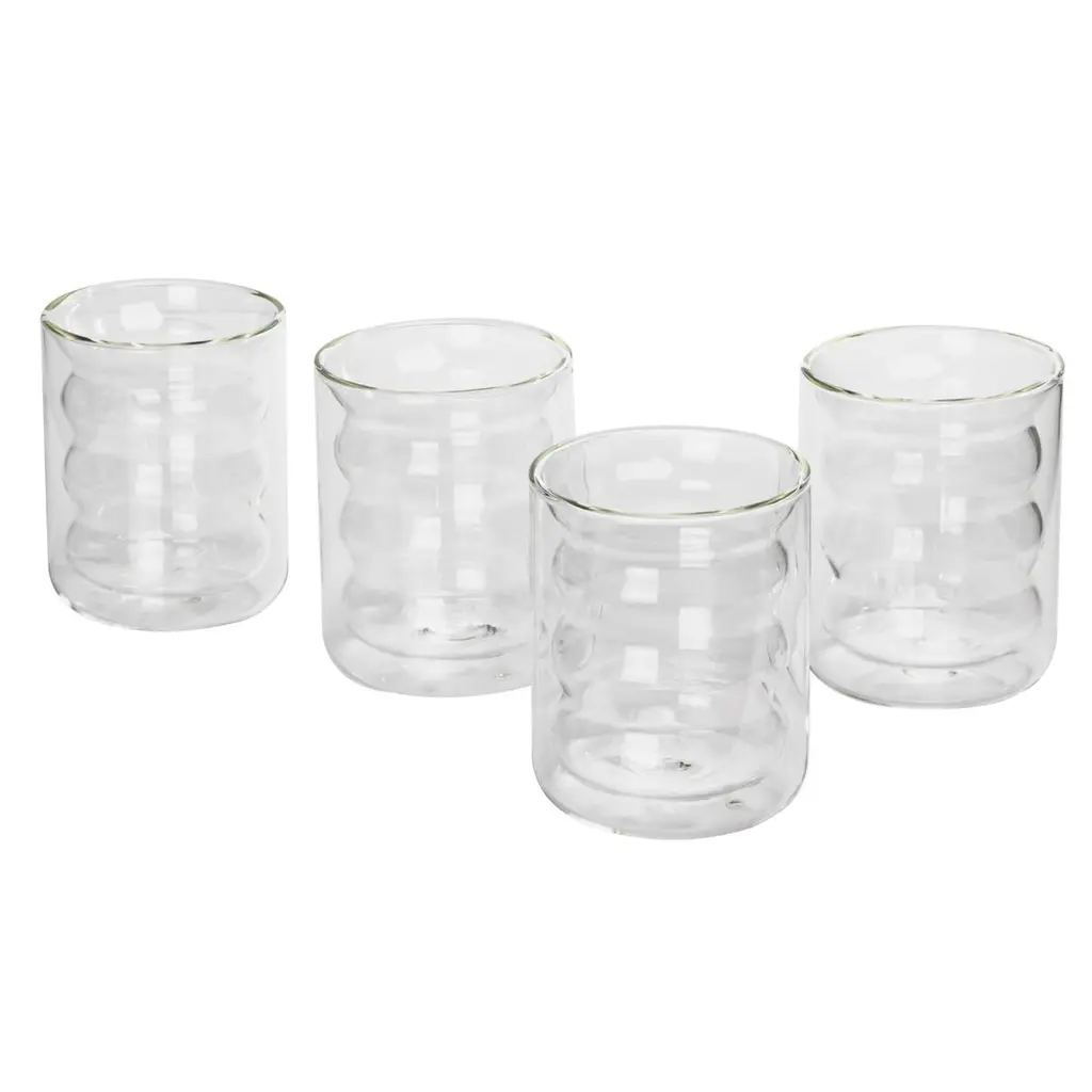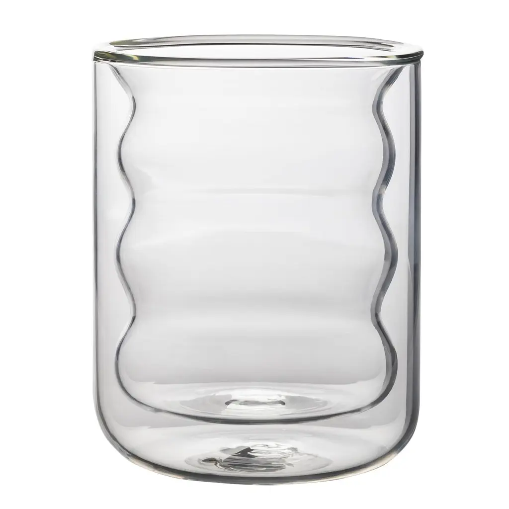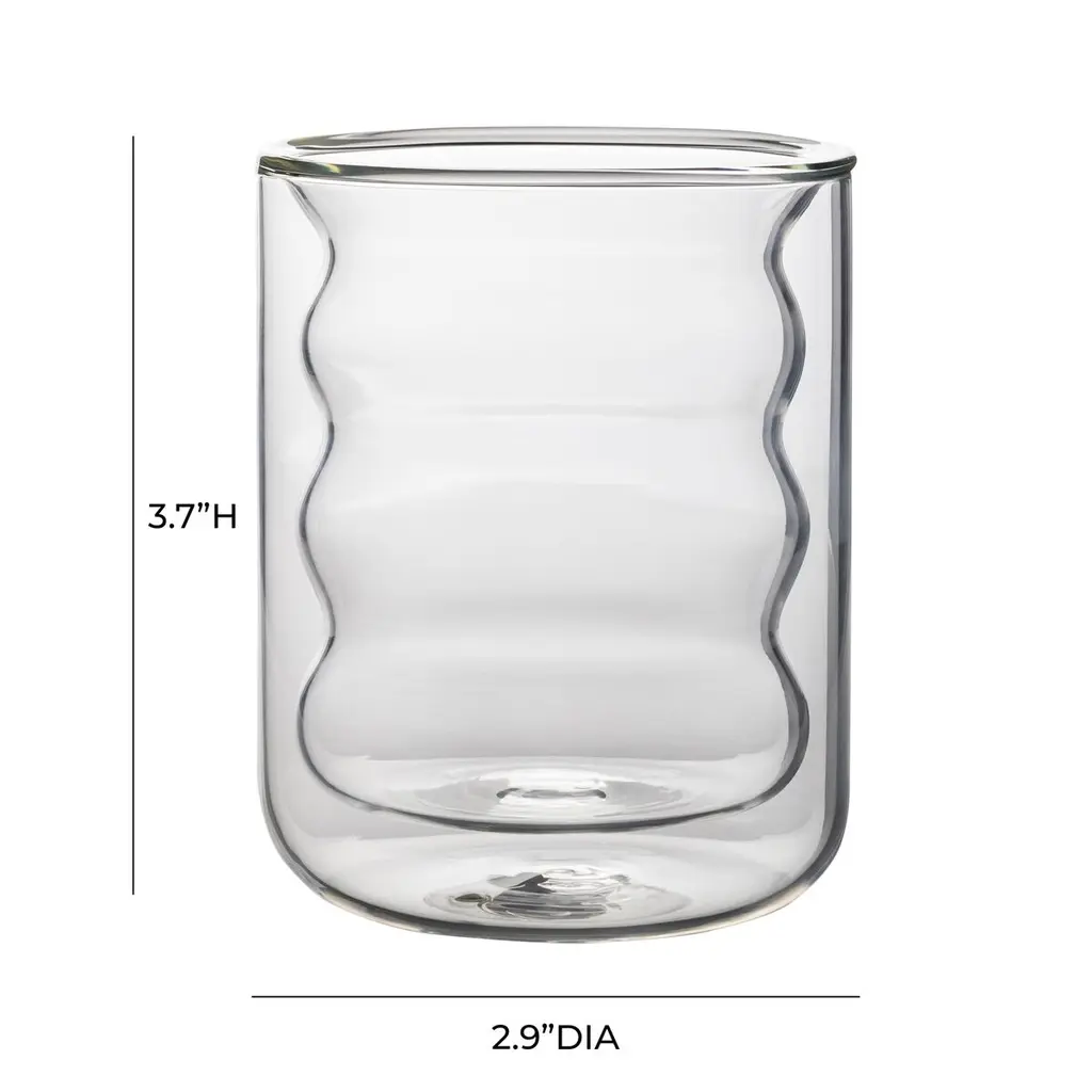 Infuse your table setting with whimsy using the vibrant drinking glasses, adorned with playful Memphis squiggles that spark joy with every sip. Available in multiple color options, these glasses offer an opportunity to mix and match for a personalized and eclectic look. They're dishwasher-safe to ensure easy cleanup, making them a functional and stylish addition to your tablescape.