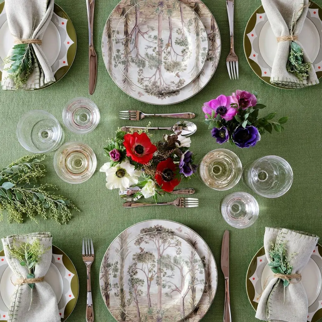 Set your table with the eye-catching design of Tall Trees from the Kit Kemp by Spode collection. This set of 4 dinner plates features a detailed border of swaying trees and is perfect for hosting dinner with friends. Dishwasher and microwave safe.